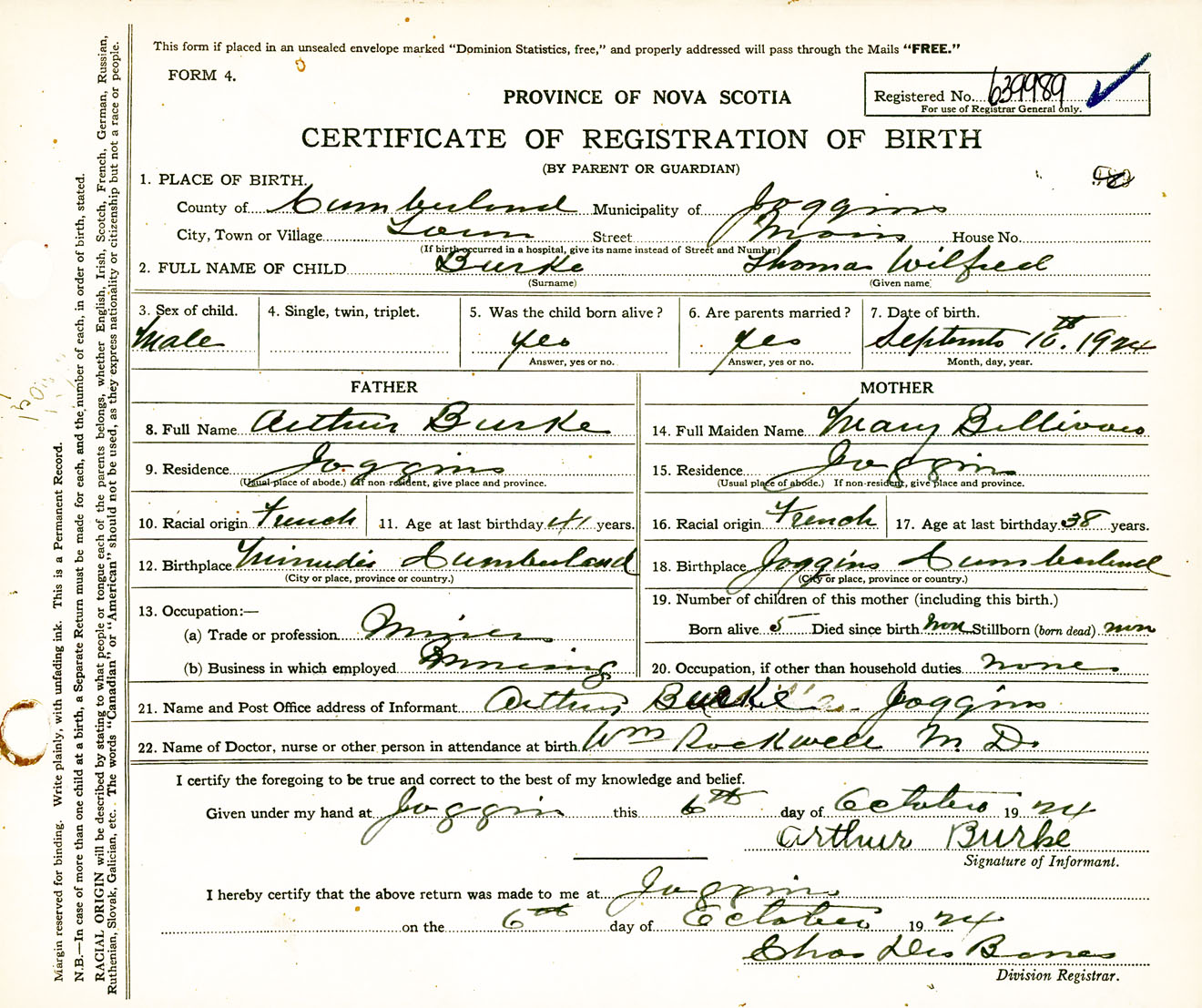 Male Birth Registration: Year: 1924 number: 63900989