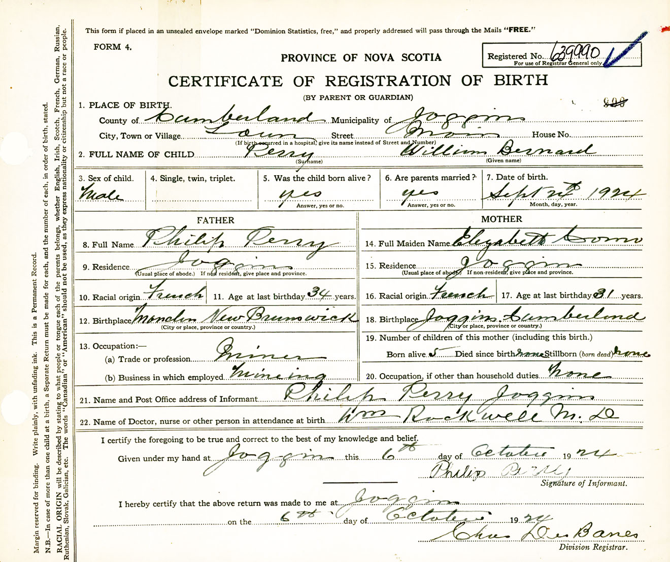 Male Birth Registration: Year: 1924 number: 63900990