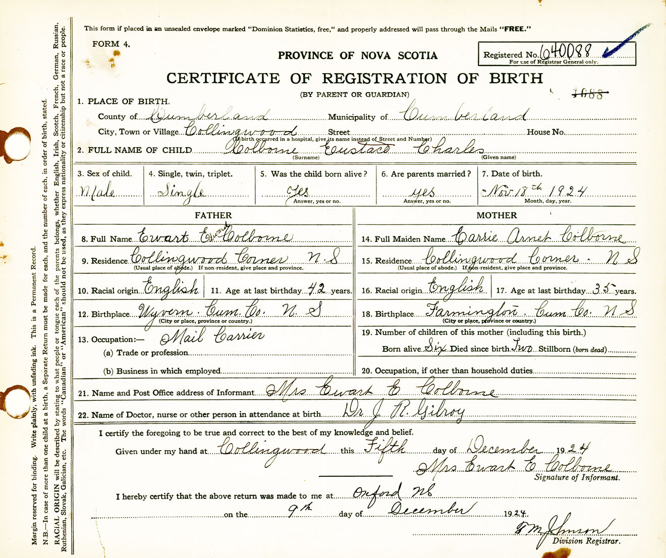 Male Birth Registration: Year: 1924 number: 64000088