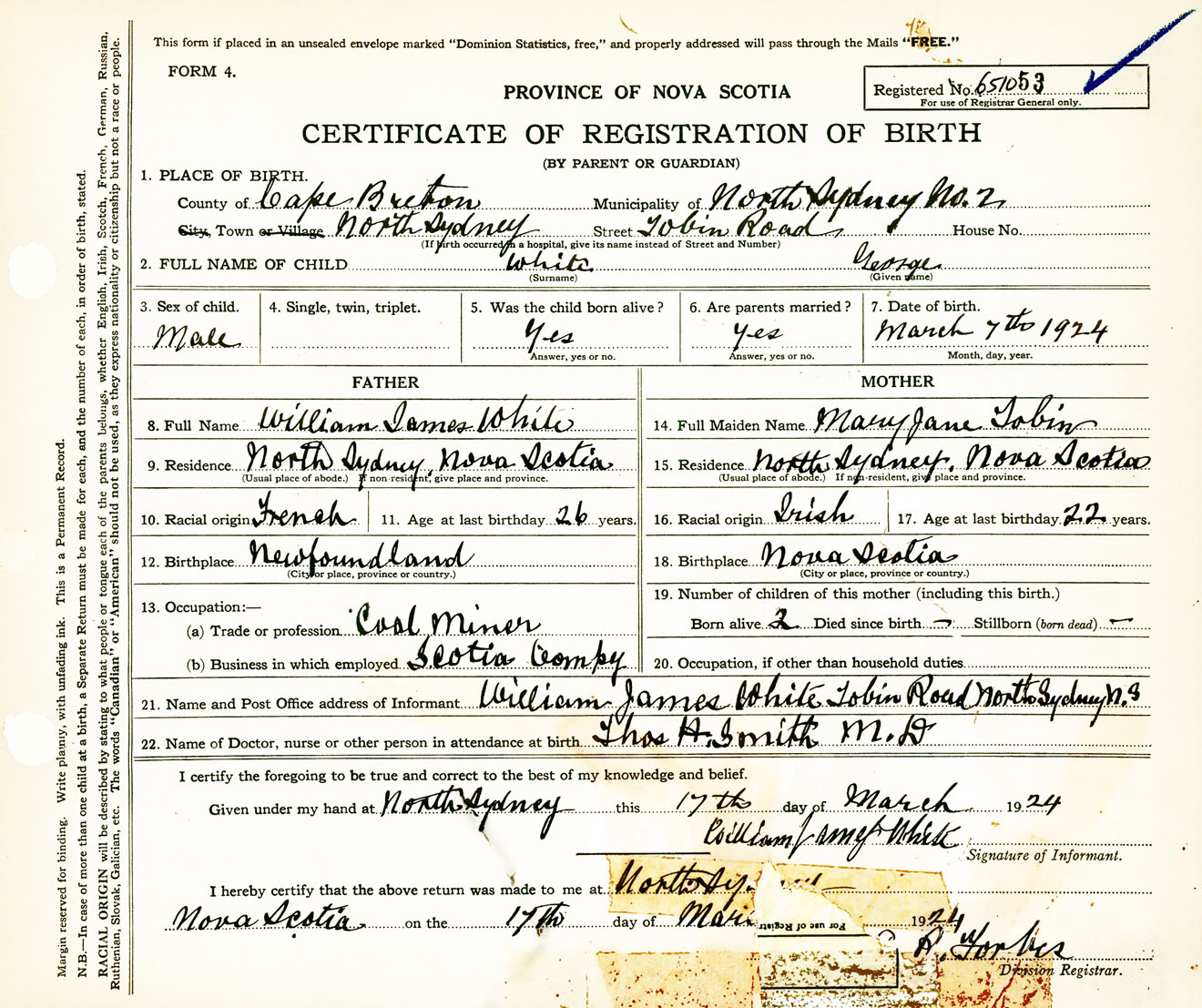 Male Birth Registration: Year: 1924 number: 65100053