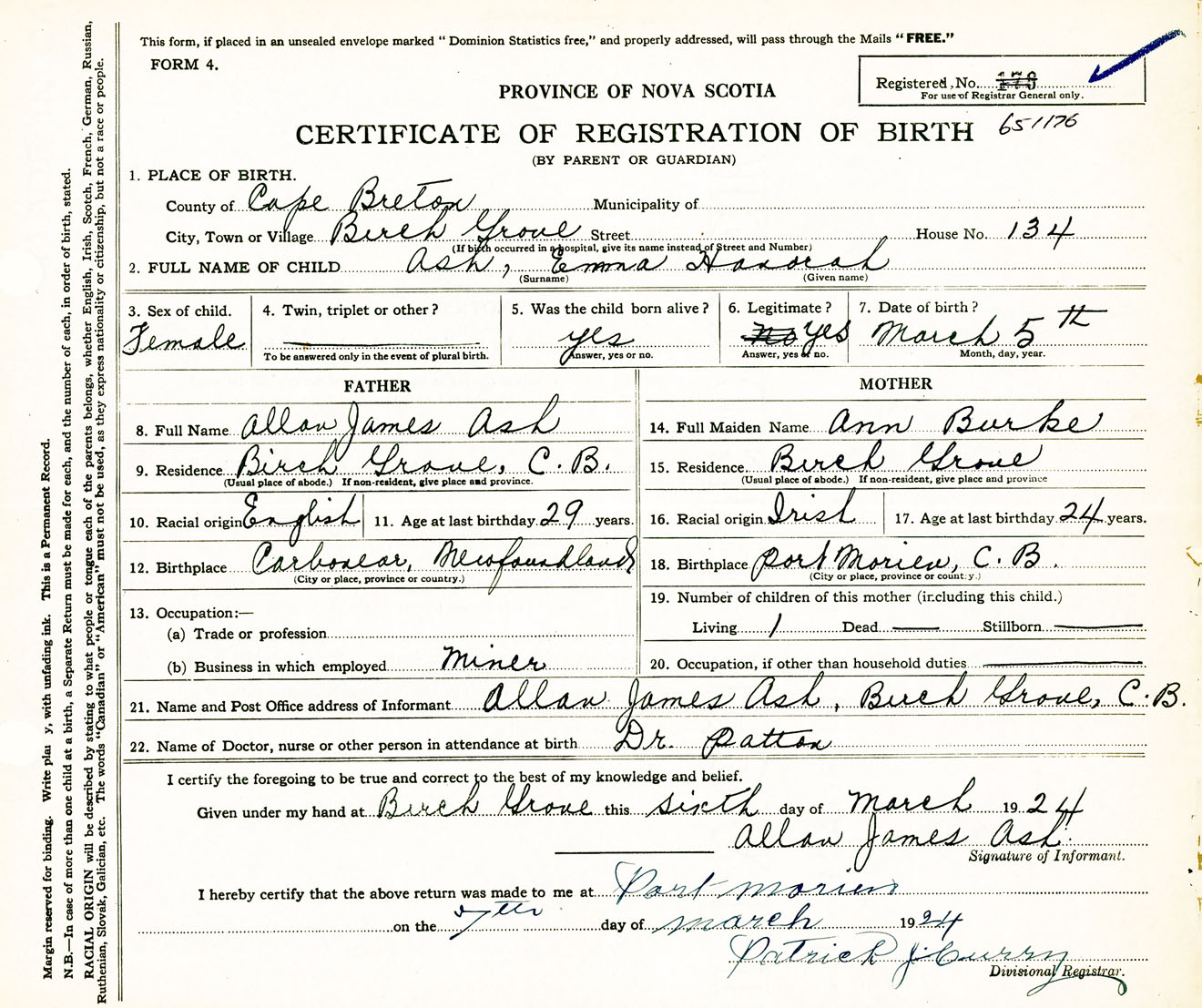 Nova Scotia Archives — https://archives.novascotia.ca/vital-statistics/birth/?ID=457905