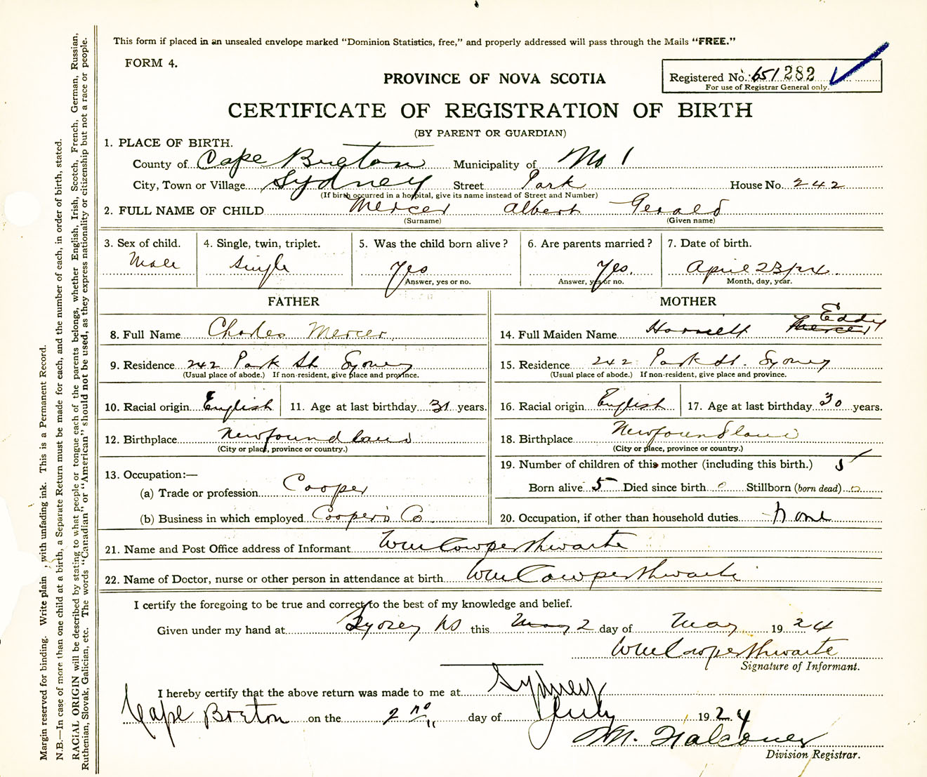 Nova Scotia Archives — https://archives.novascotia.ca/vital-statistics/birth/?ID=458011