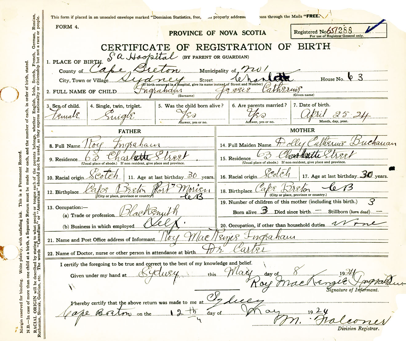 Nova Scotia Archives — https://archives.novascotia.ca/vital-statistics/birth/?ID=458017