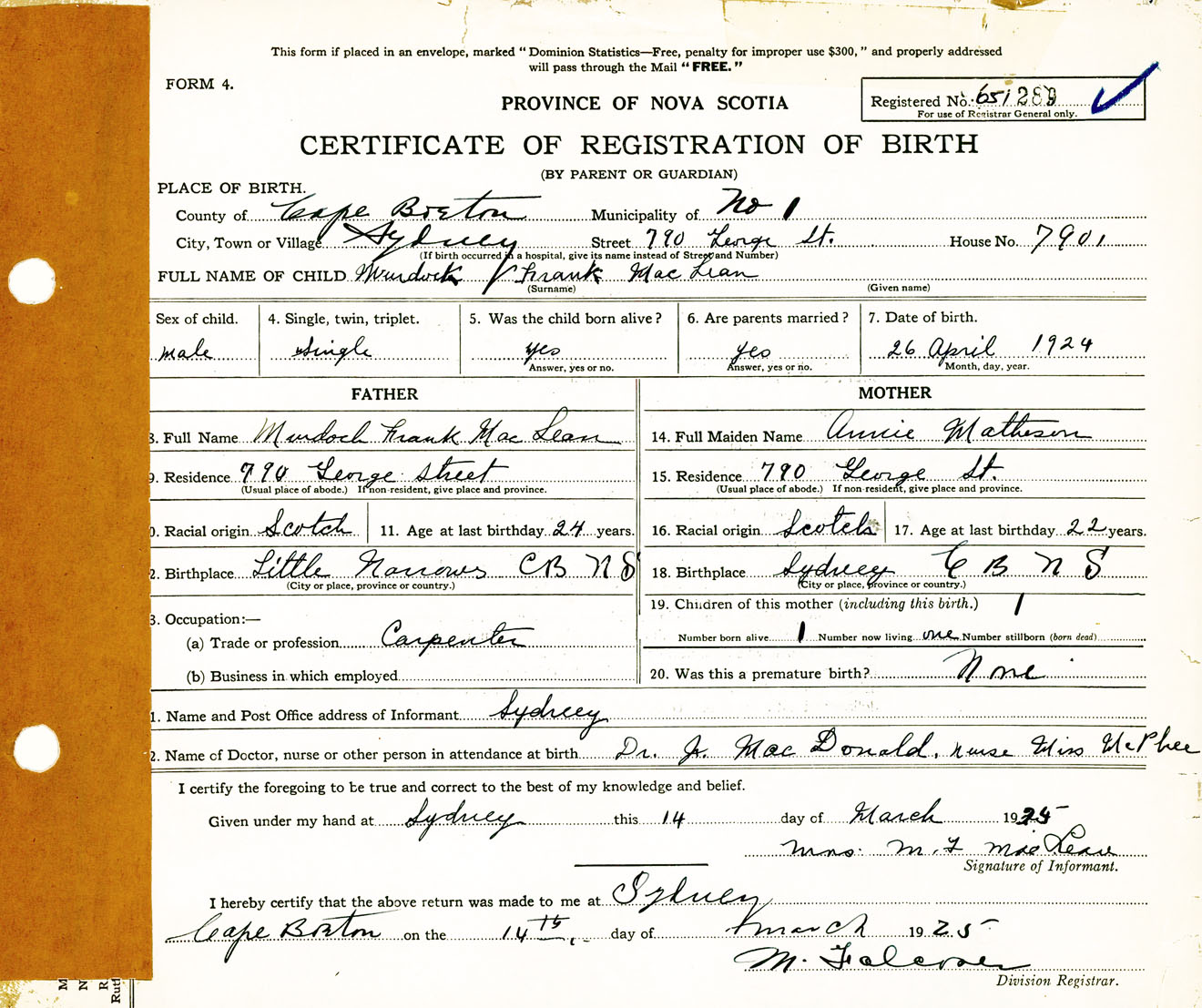 Nova Scotia Archives — https://archives.novascotia.ca/vital-statistics/birth/?ID=458018