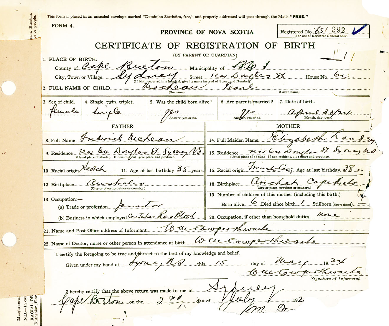 Nova Scotia Archives — https://archives.novascotia.ca/vital-statistics/birth/?ID=458021