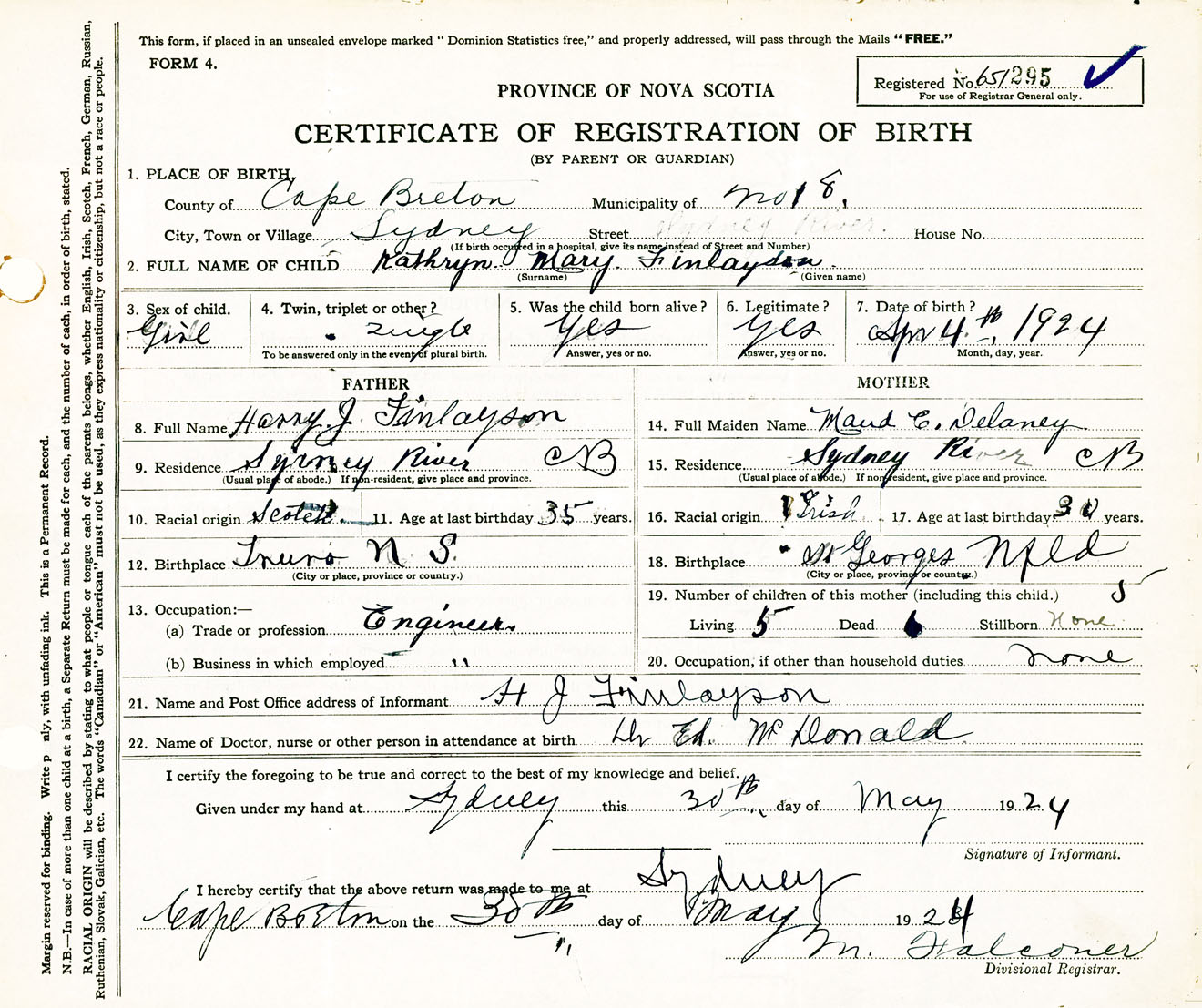 Nova Scotia Archives — https://archives.novascotia.ca/vital-statistics/birth/?ID=458024