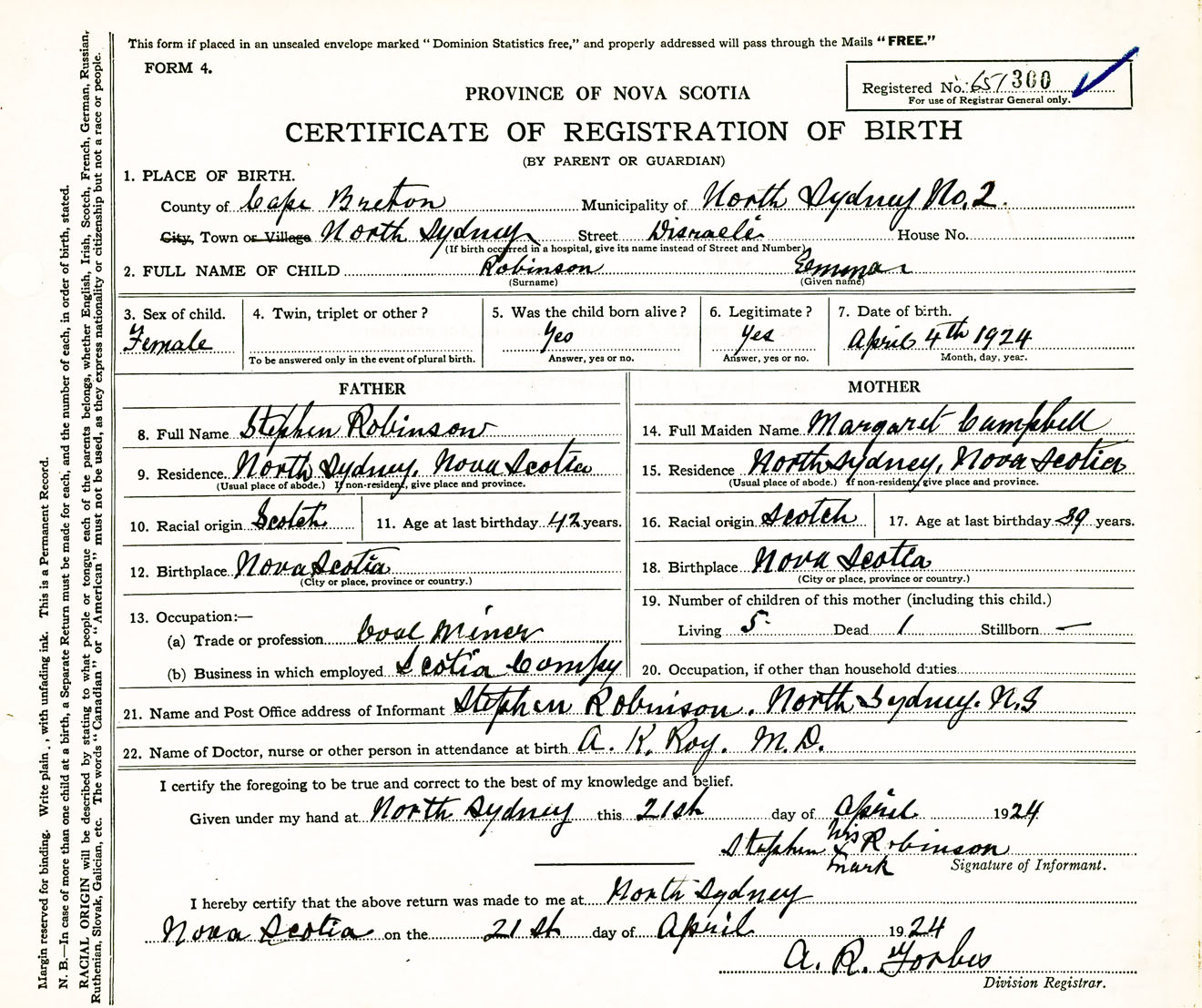 Nova Scotia Archives — https://archives.novascotia.ca/vital-statistics/birth/?ID=458029