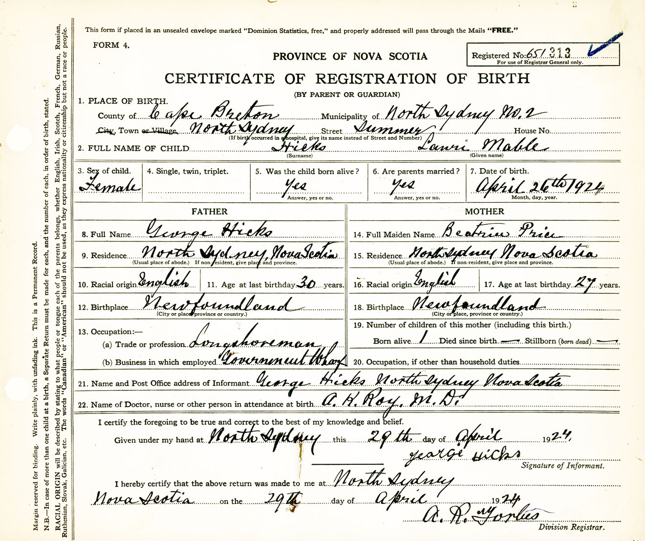 Nova Scotia Archives — https://archives.novascotia.ca/vital-statistics/birth/?ID=458041