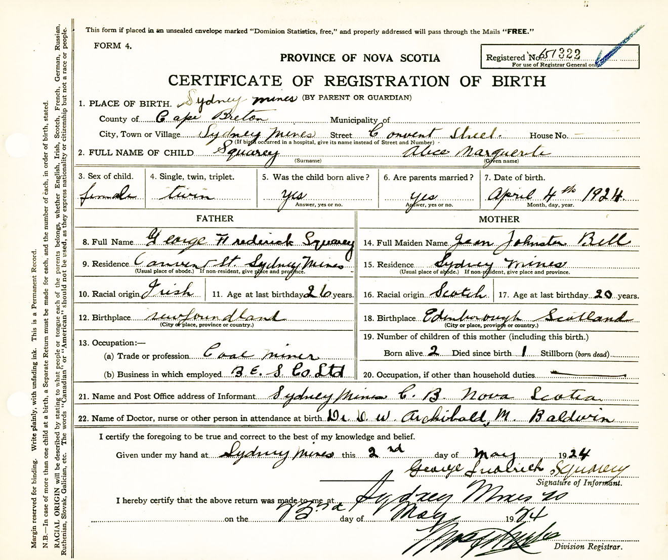 Nova Scotia Archives — https://archives.novascotia.ca/vital-statistics/birth/?ID=458050