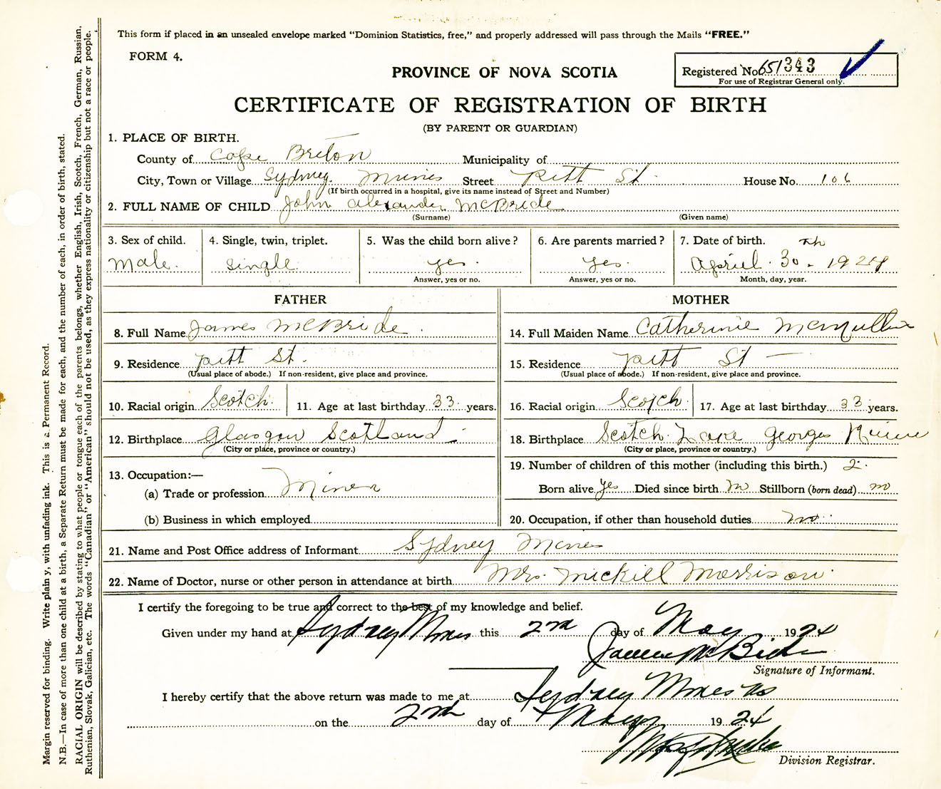 Nova Scotia Archives — https://archives.novascotia.ca/vital-statistics/birth/?ID=458071