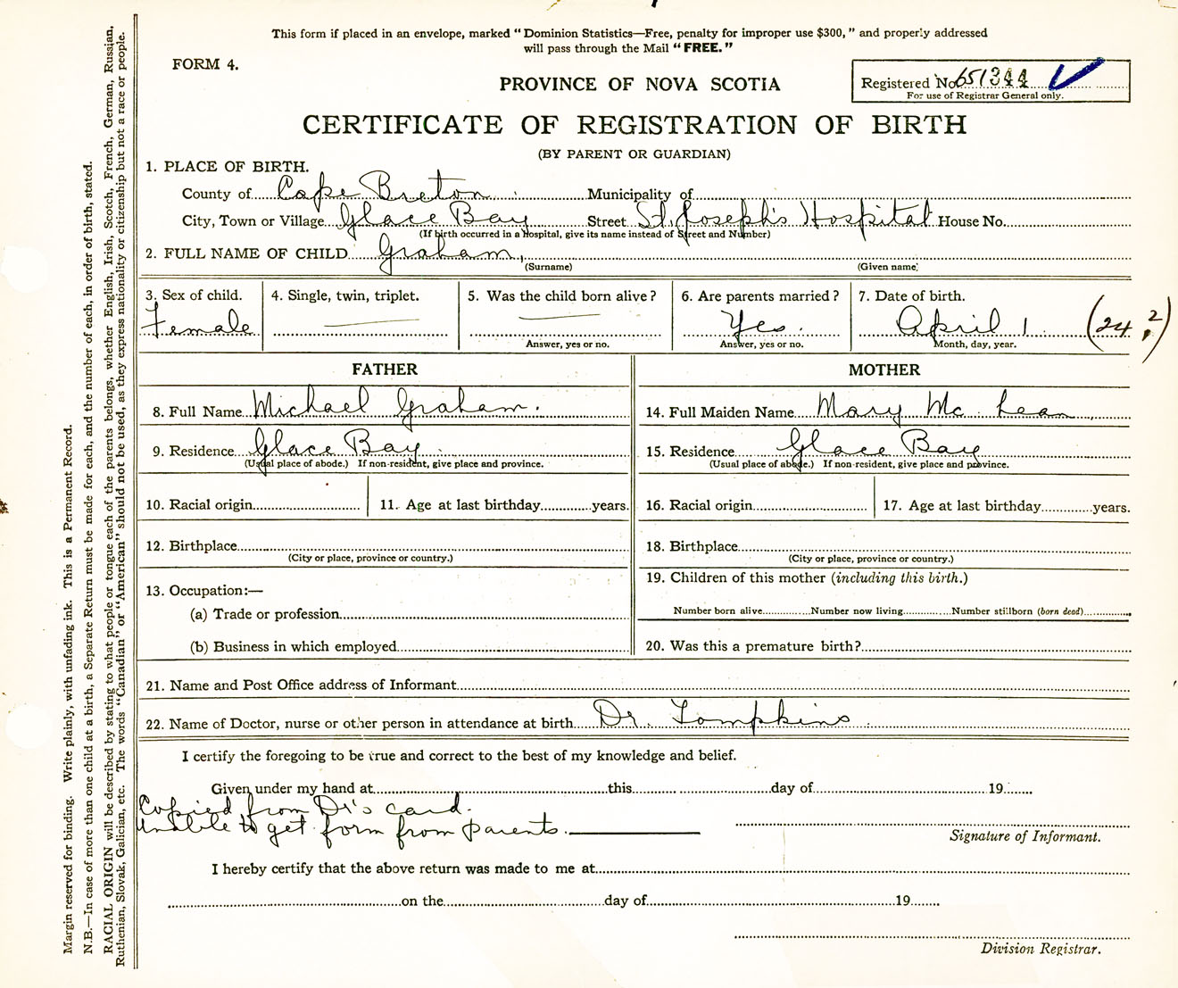 Nova Scotia Archives — https://archives.novascotia.ca/vital-statistics/birth/?ID=458072