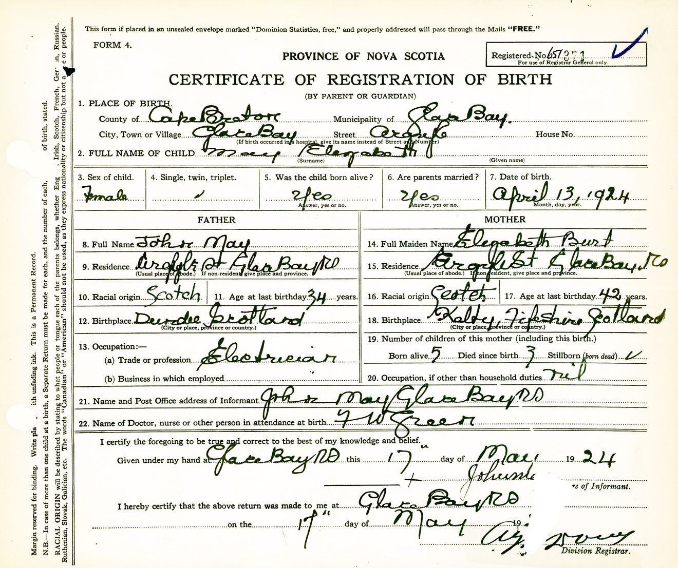 Nova Scotia Archives — https://archives.novascotia.ca/vital-statistics/birth/?ID=458099