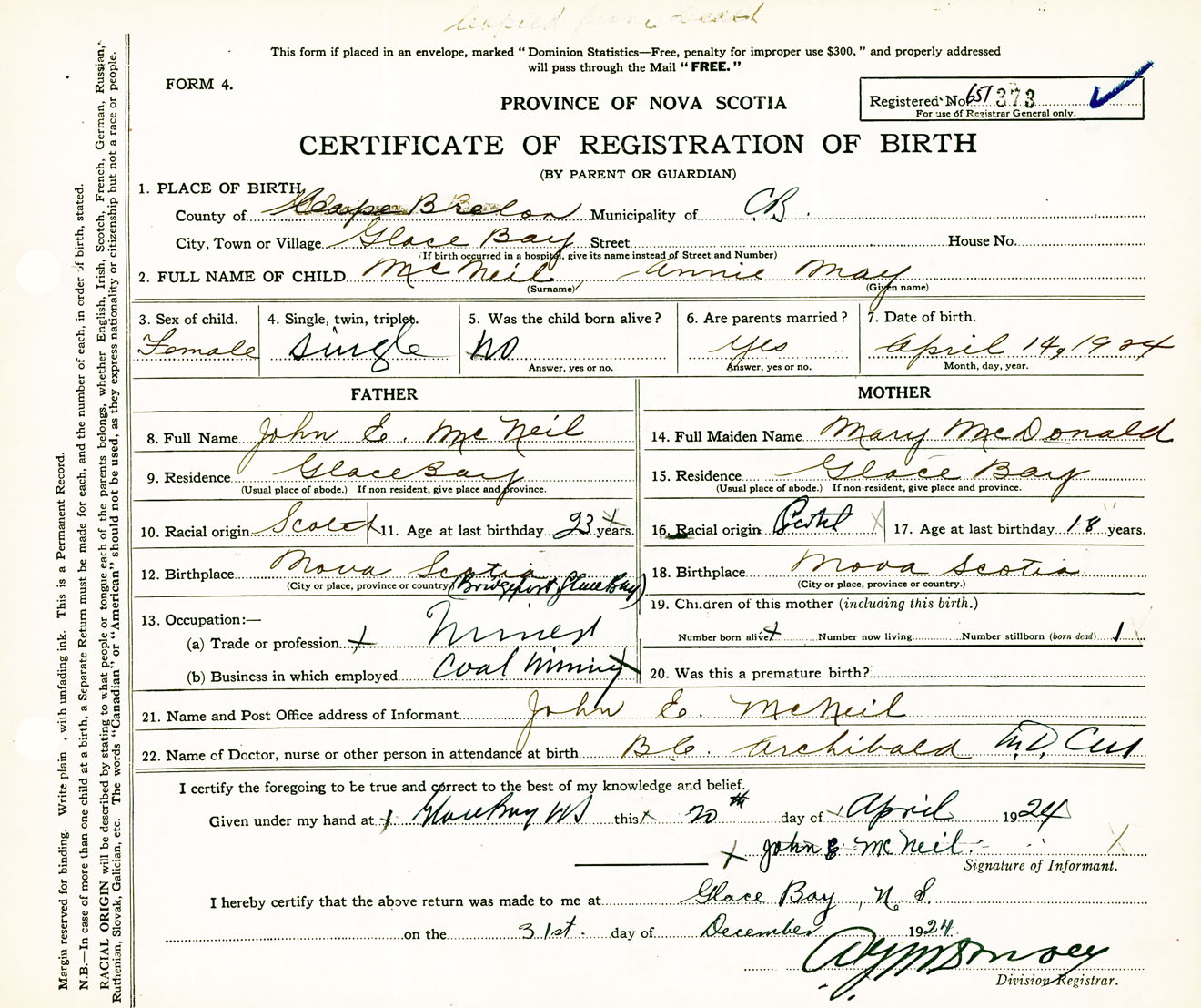 Nova Scotia Archives — https://archives.novascotia.ca/vital-statistics/birth/?ID=458101