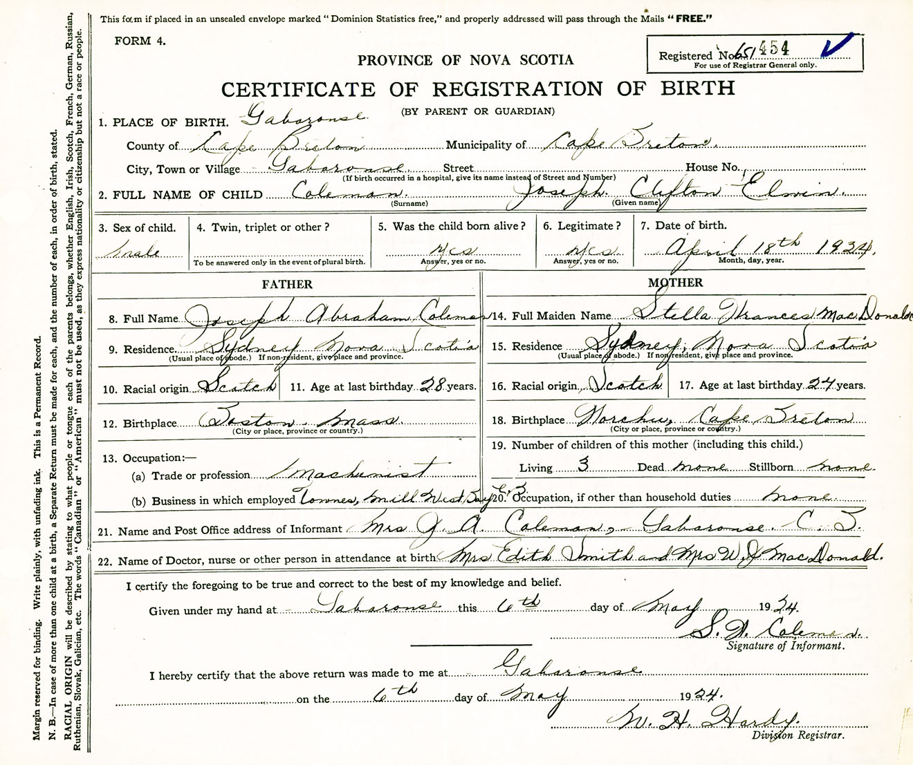 Nova Scotia Archives — https://archives.novascotia.ca/vital-statistics/birth/?ID=458182