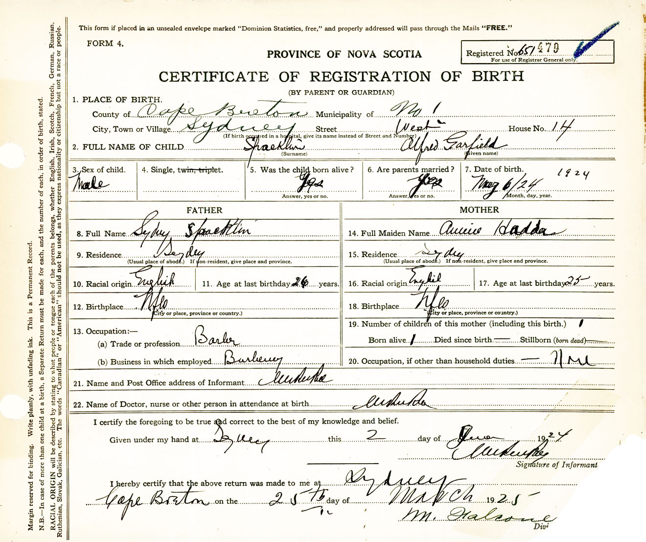 Nova Scotia Archives — https://archives.novascotia.ca/vital-statistics/birth/?ID=458207