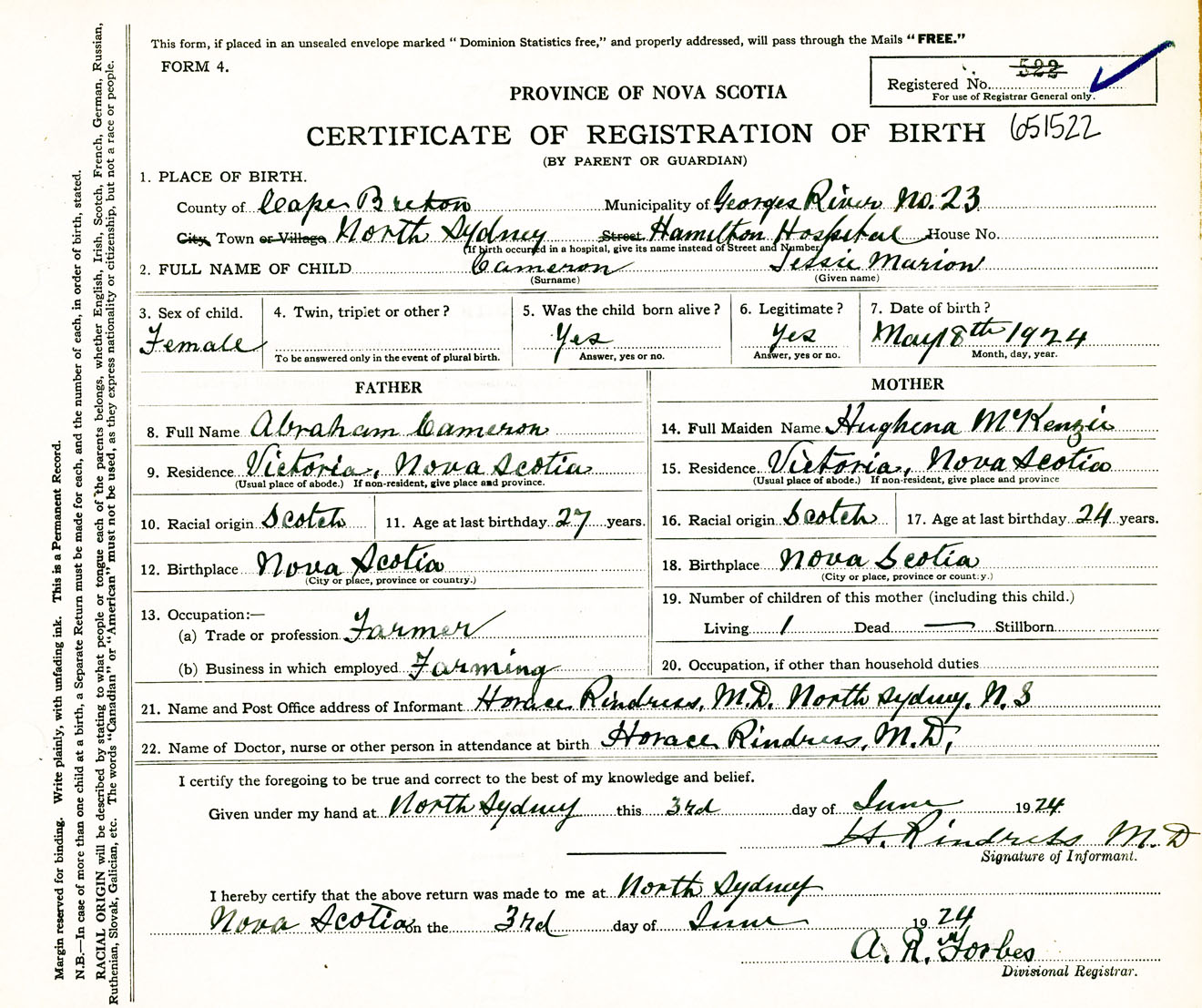 Nova Scotia Archives — https://archives.novascotia.ca/vital-statistics/birth/?ID=458250