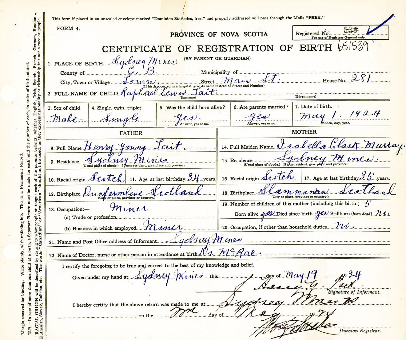 Nova Scotia Archives — https://archives.novascotia.ca/vital-statistics/birth/?ID=458267