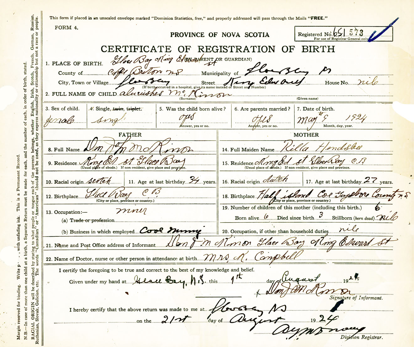 Nova Scotia Archives — https://archives.novascotia.ca/vital-statistics/birth/?ID=458301