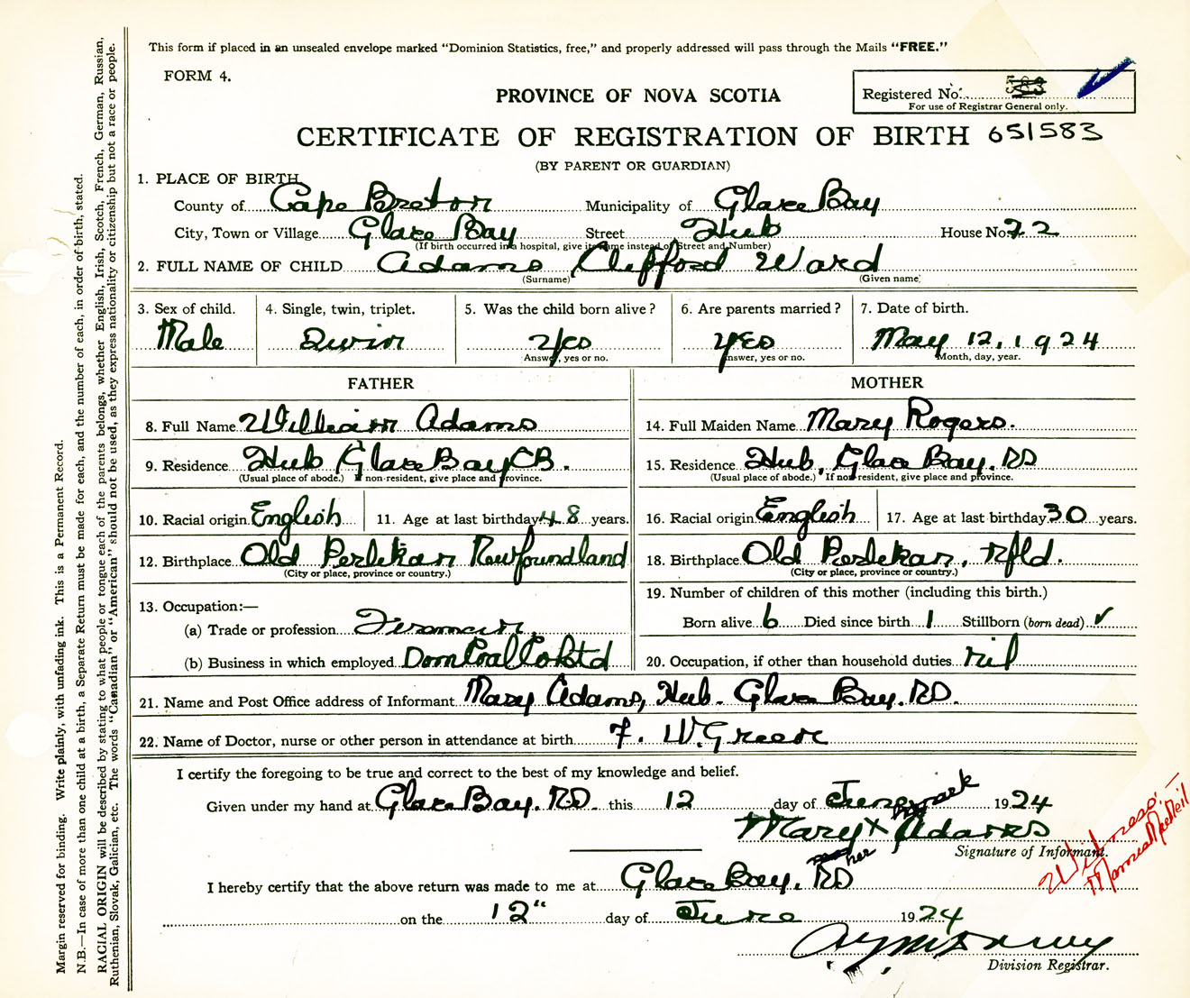 Nova Scotia Archives — https://archives.novascotia.ca/vital-statistics/birth/?ID=458311