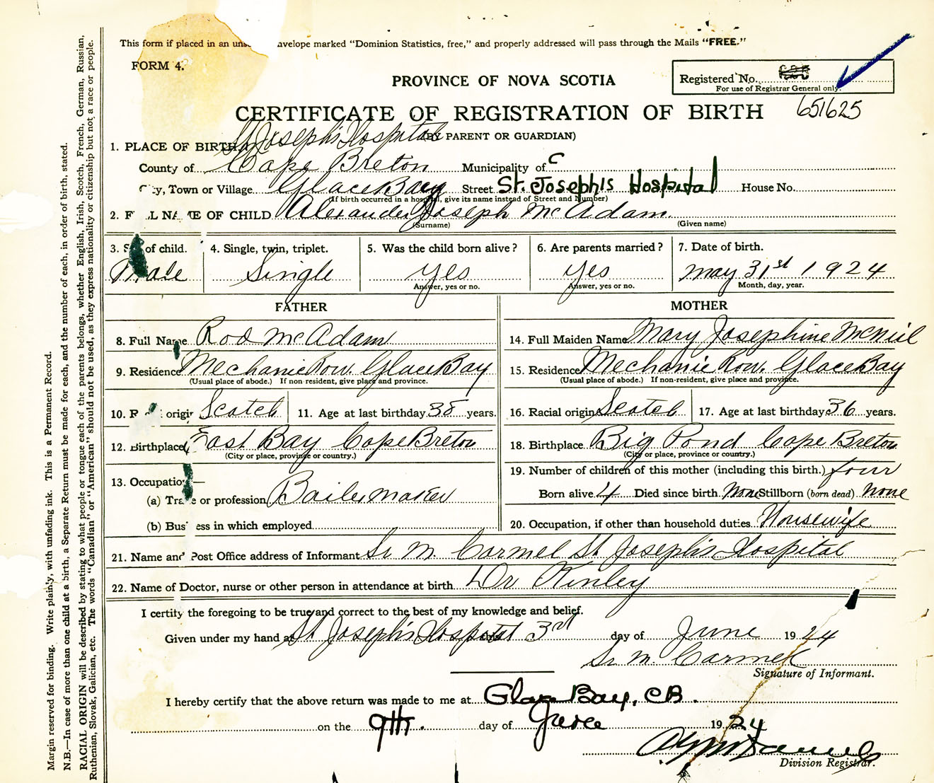 Nova Scotia Archives — https://archives.novascotia.ca/vital-statistics/birth/?ID=458353