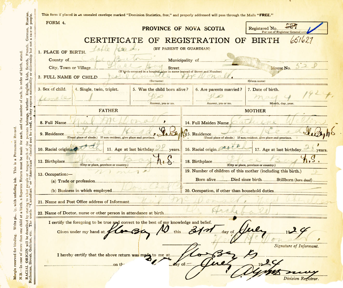 Nova Scotia Archives — https://archives.novascotia.ca/vital-statistics/birth/?ID=458355