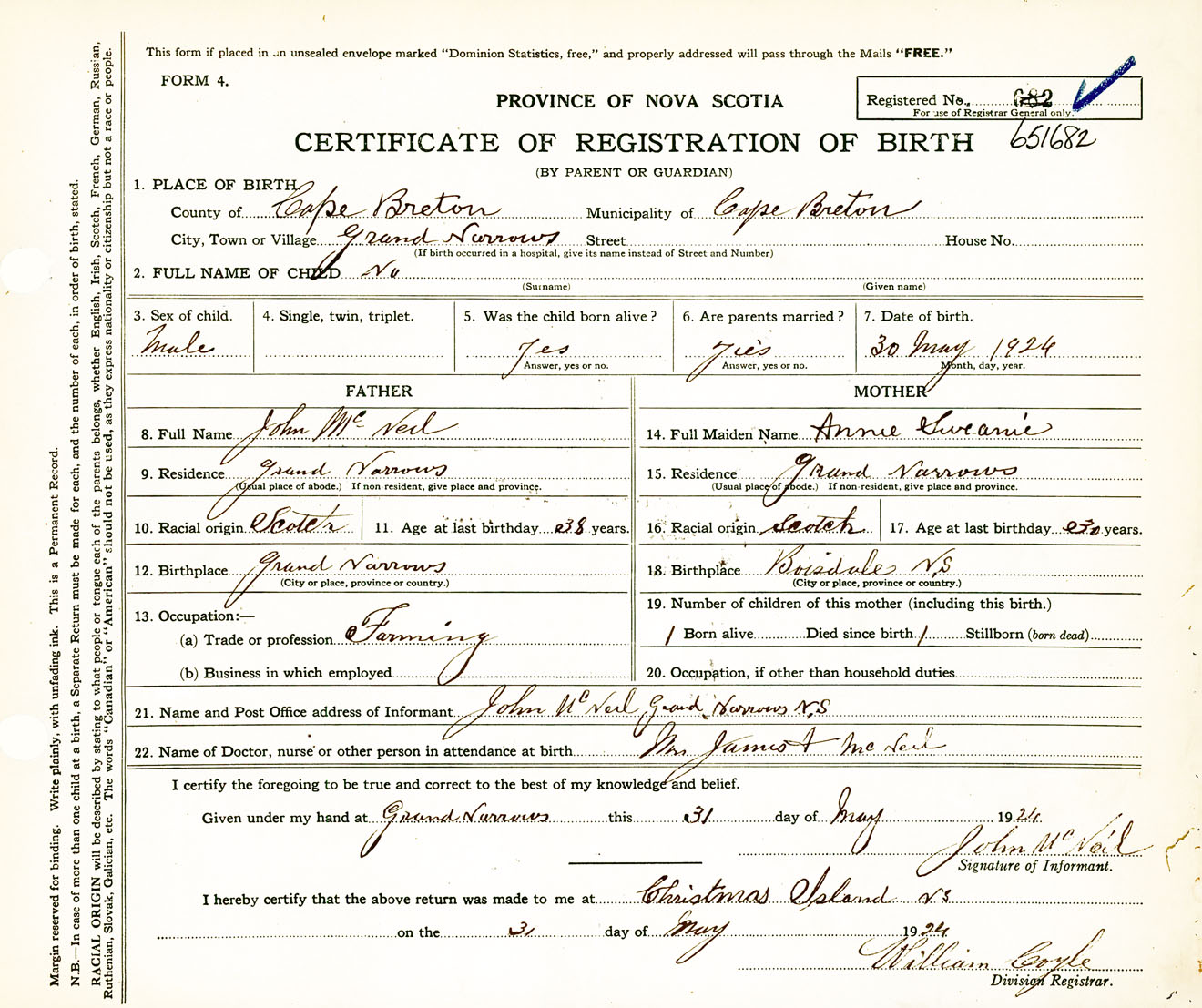 Nova Scotia Archives — https://archives.novascotia.ca/vital-statistics/birth/?ID=458410