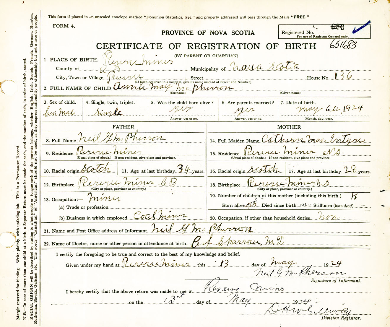 Nova Scotia Archives — https://archives.novascotia.ca/vital-statistics/birth/?ID=458411