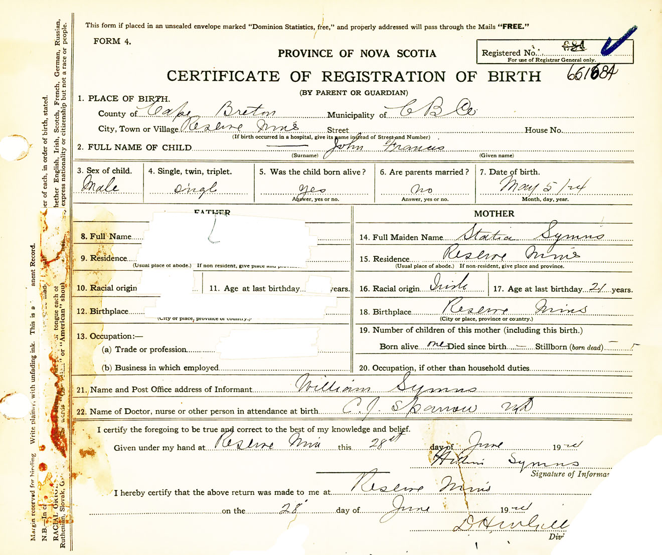 Nova Scotia Archives — https://archives.novascotia.ca/vital-statistics/birth/?ID=458412