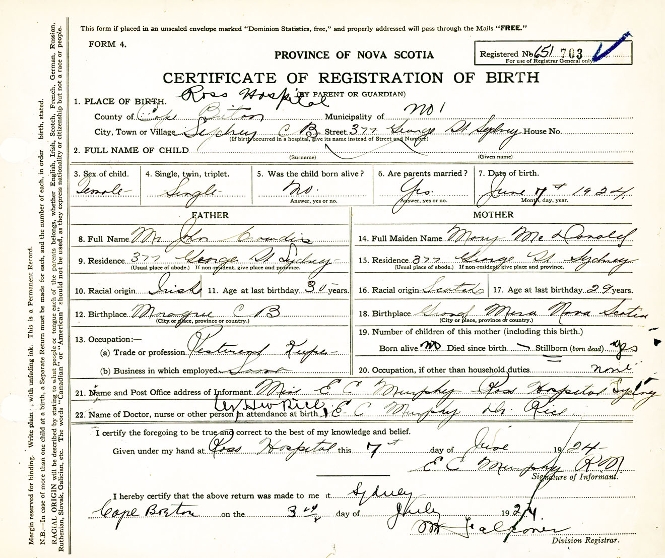 Nova Scotia Archives — https://archives.novascotia.ca/vital-statistics/birth/?ID=458431