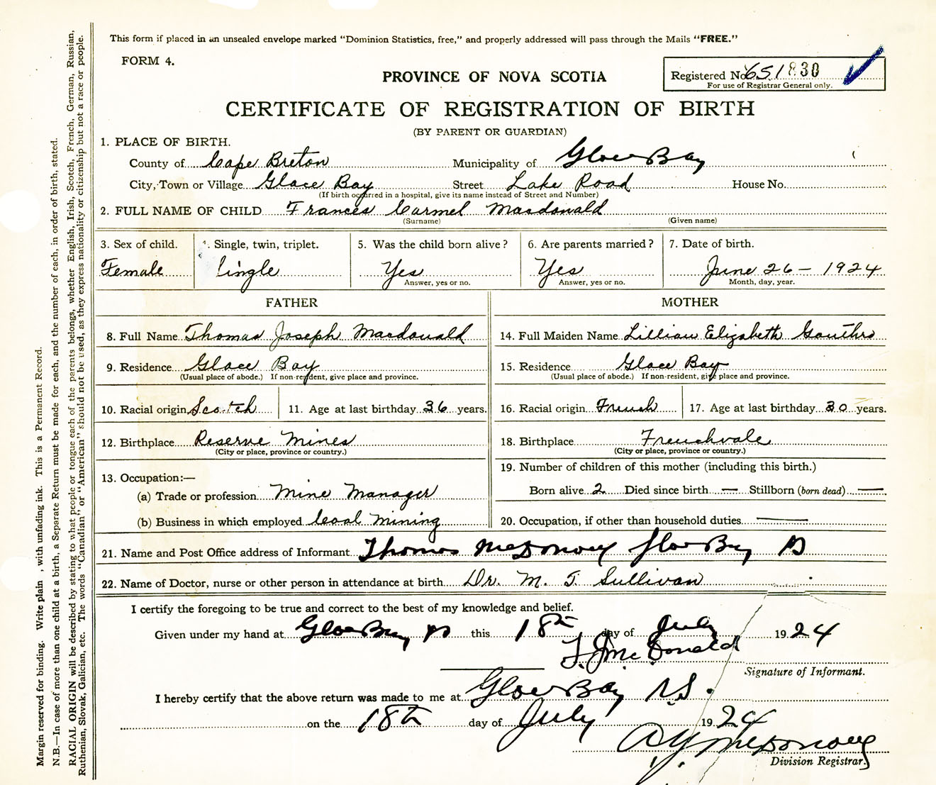 Nova Scotia Archives — https://archives.novascotia.ca/vital-statistics/birth/?ID=458558