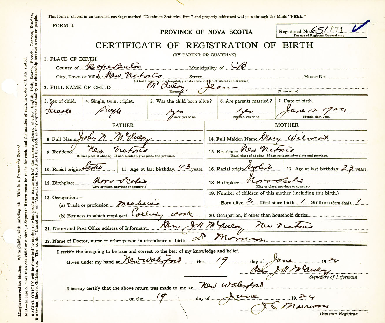 Nova Scotia Archives — https://archives.novascotia.ca/vital-statistics/birth/?ID=458599