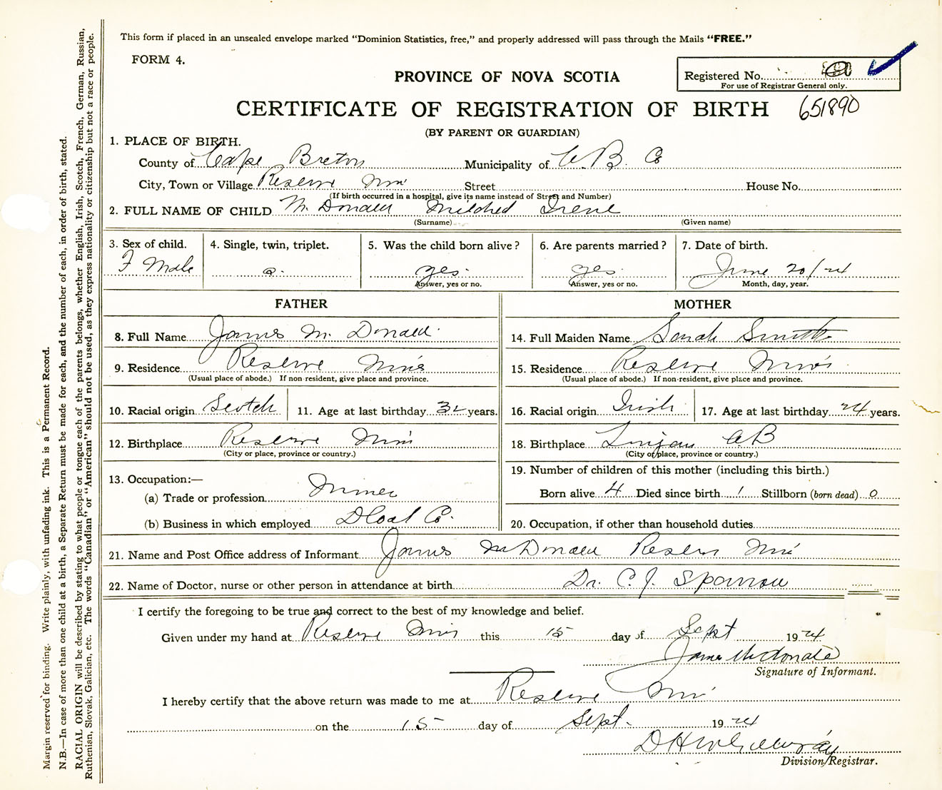 Nova Scotia Archives — https://archives.novascotia.ca/vital-statistics/birth/?ID=458618