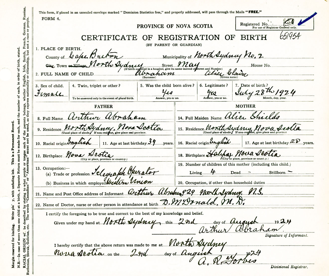 Nova Scotia Archives — https://archives.novascotia.ca/vital-statistics/birth/?ID=458682
