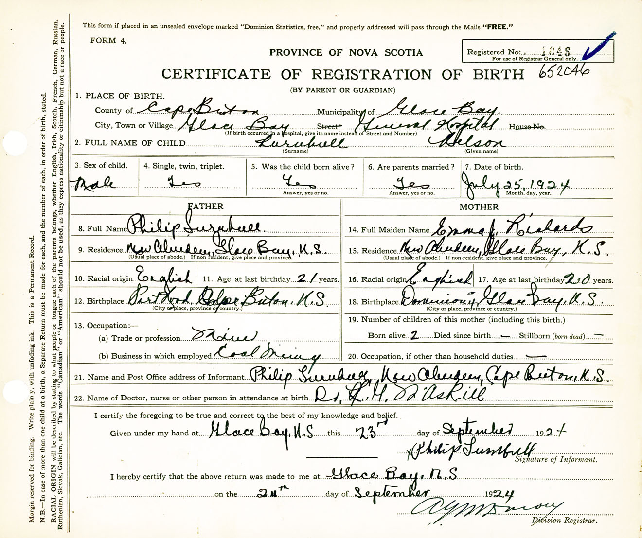 Nova Scotia Archives — https://archives.novascotia.ca/vital-statistics/birth/?ID=458774