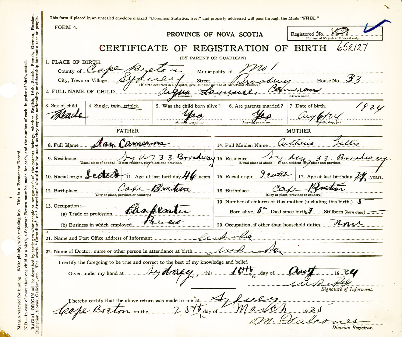 Nova Scotia Archives — https://archives.novascotia.ca/vital-statistics/birth/?ID=458855