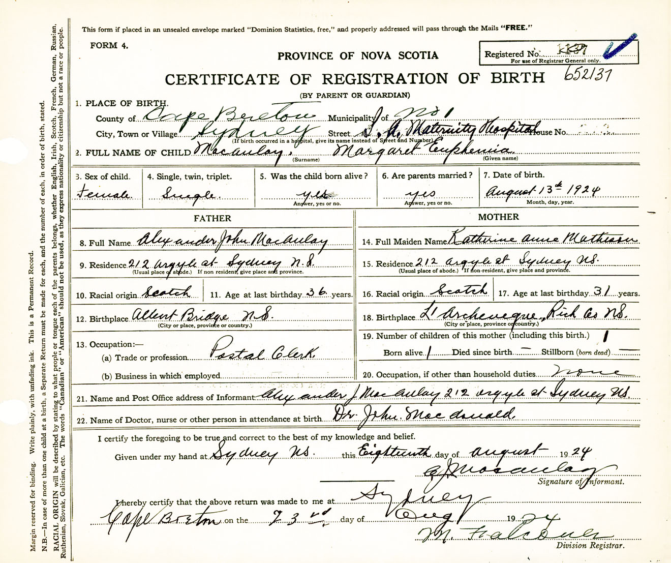 Nova Scotia Archives — https://archives.novascotia.ca/vital-statistics/birth/?ID=458865