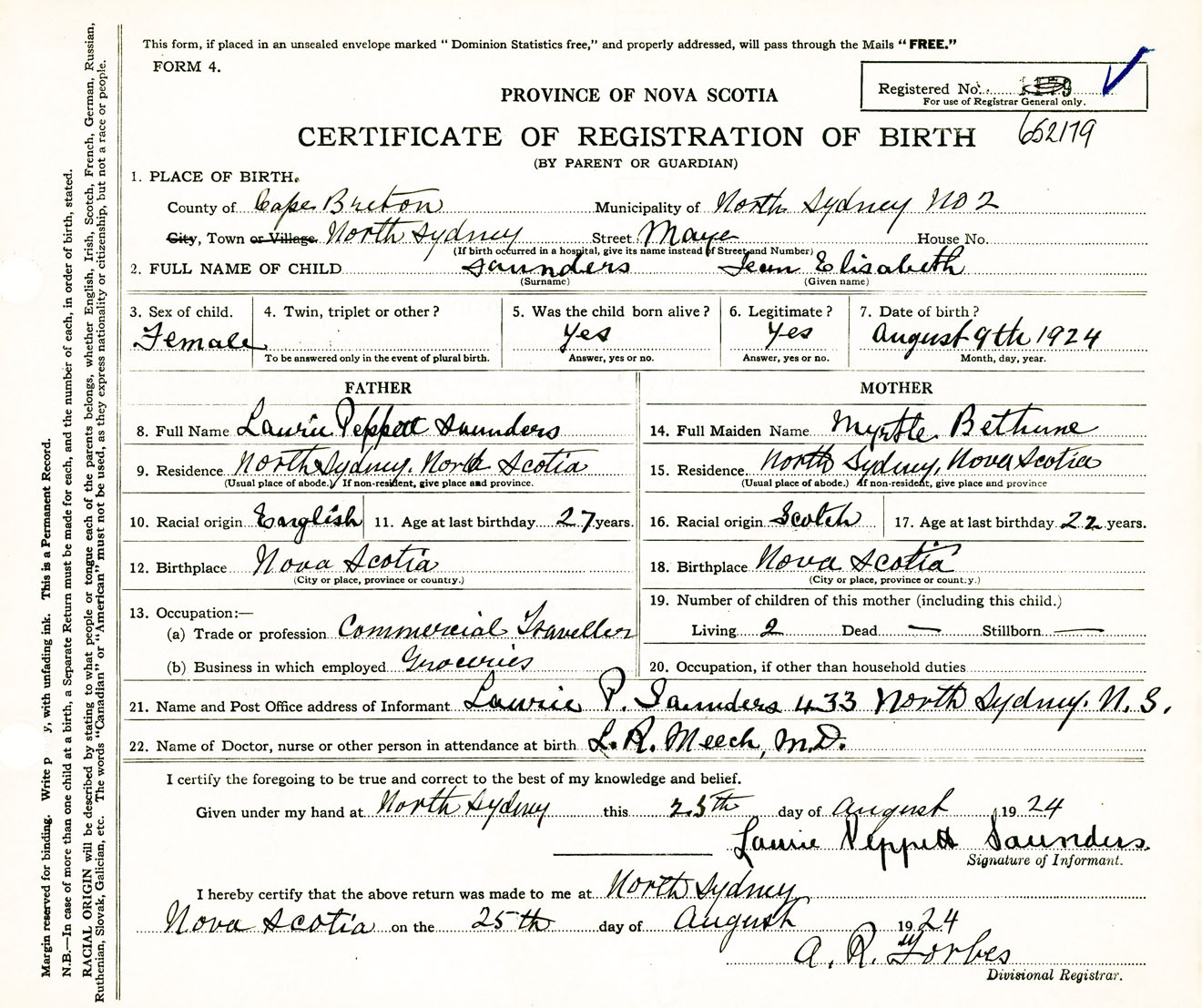 Nova Scotia Archives — https://archives.novascotia.ca/vital-statistics/birth/?ID=458907