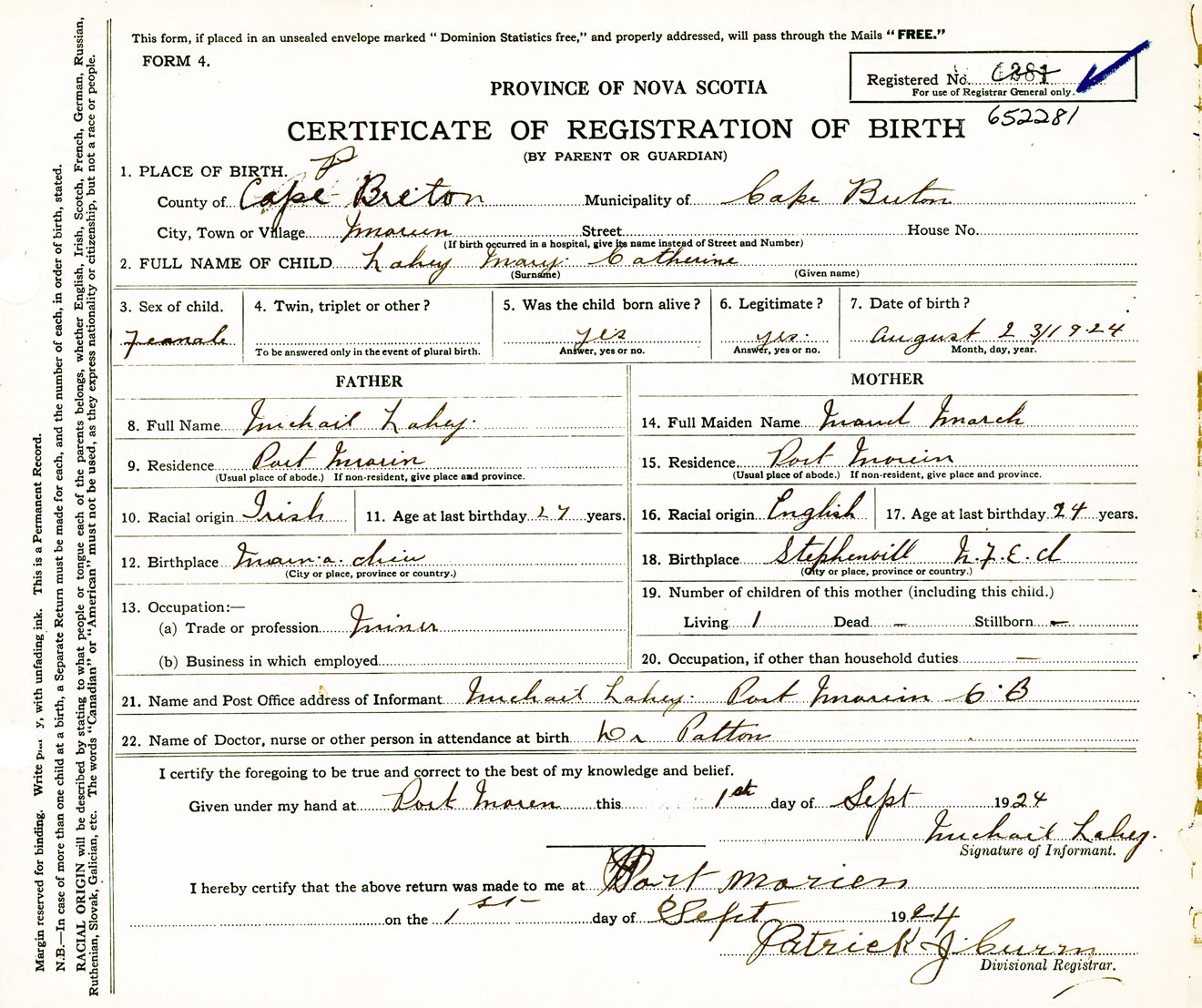 Nova Scotia Archives — https://archives.novascotia.ca/vital-statistics/birth/?ID=459009