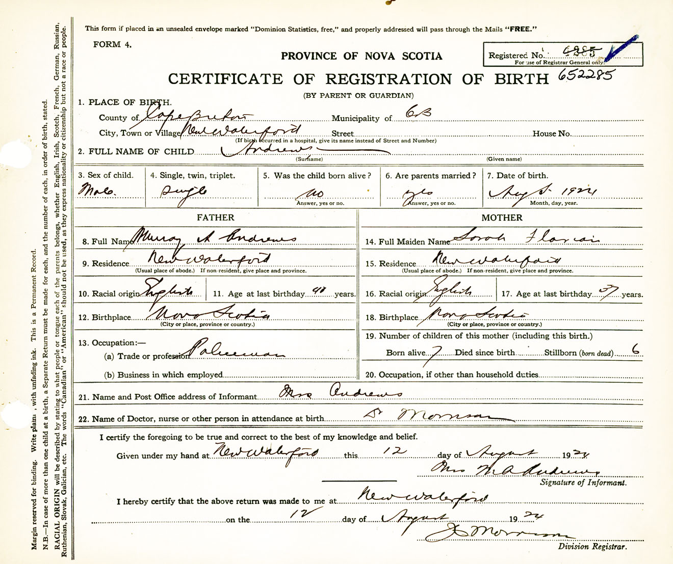 Nova Scotia Archives — https://archives.novascotia.ca/vital-statistics/birth/?ID=459013