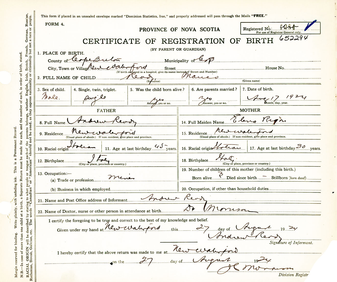 Nova Scotia Archives — https://archives.novascotia.ca/vital-statistics/birth/?ID=459022