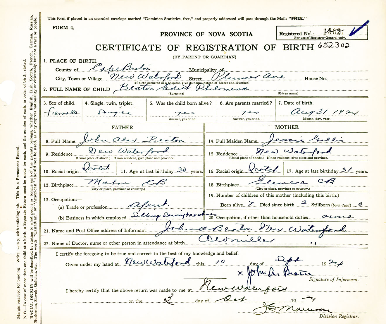 Nova Scotia Archives — https://archives.novascotia.ca/vital-statistics/birth/?ID=459030