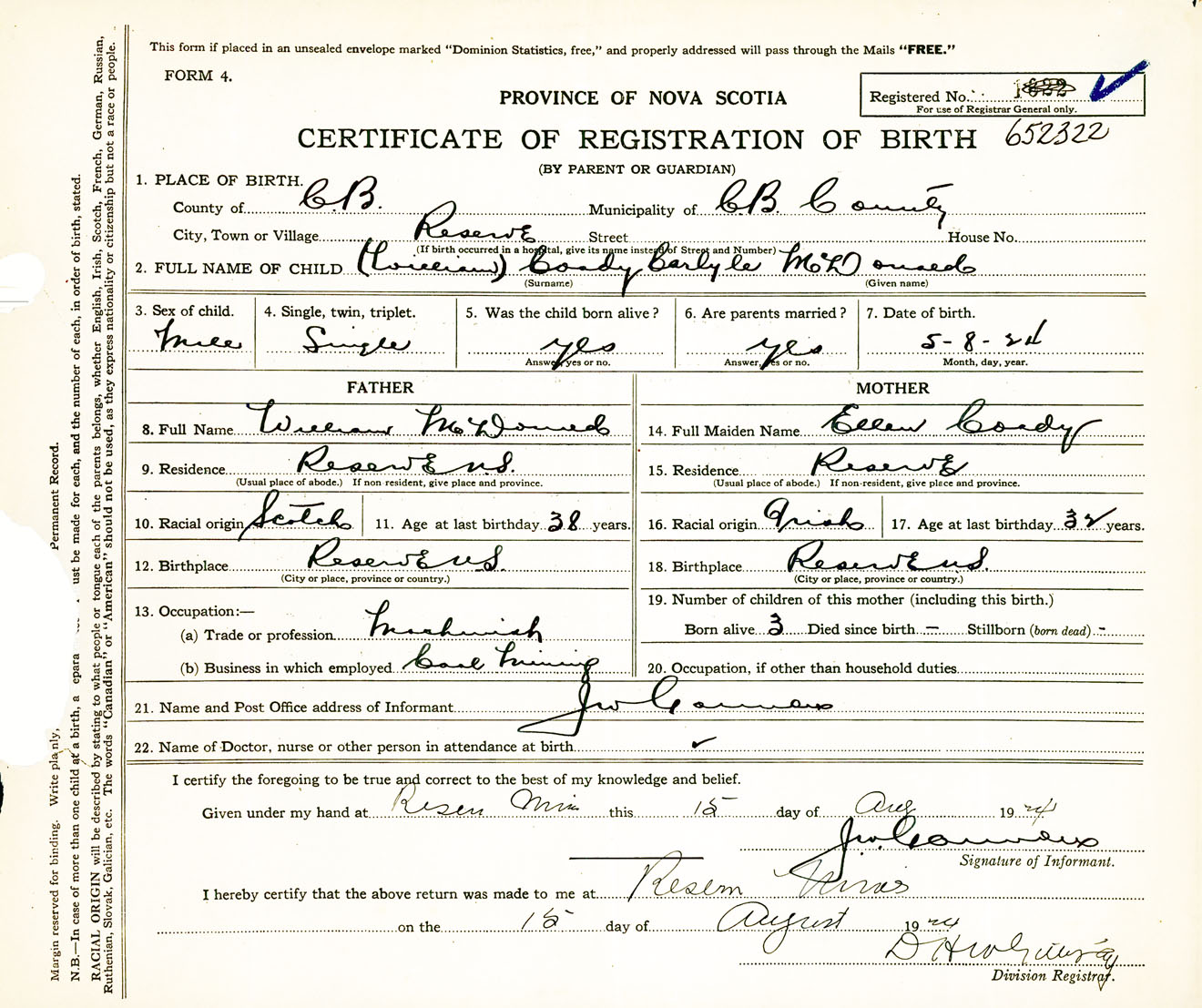 Nova Scotia Archives — https://archives.novascotia.ca/vital-statistics/birth/?ID=459050