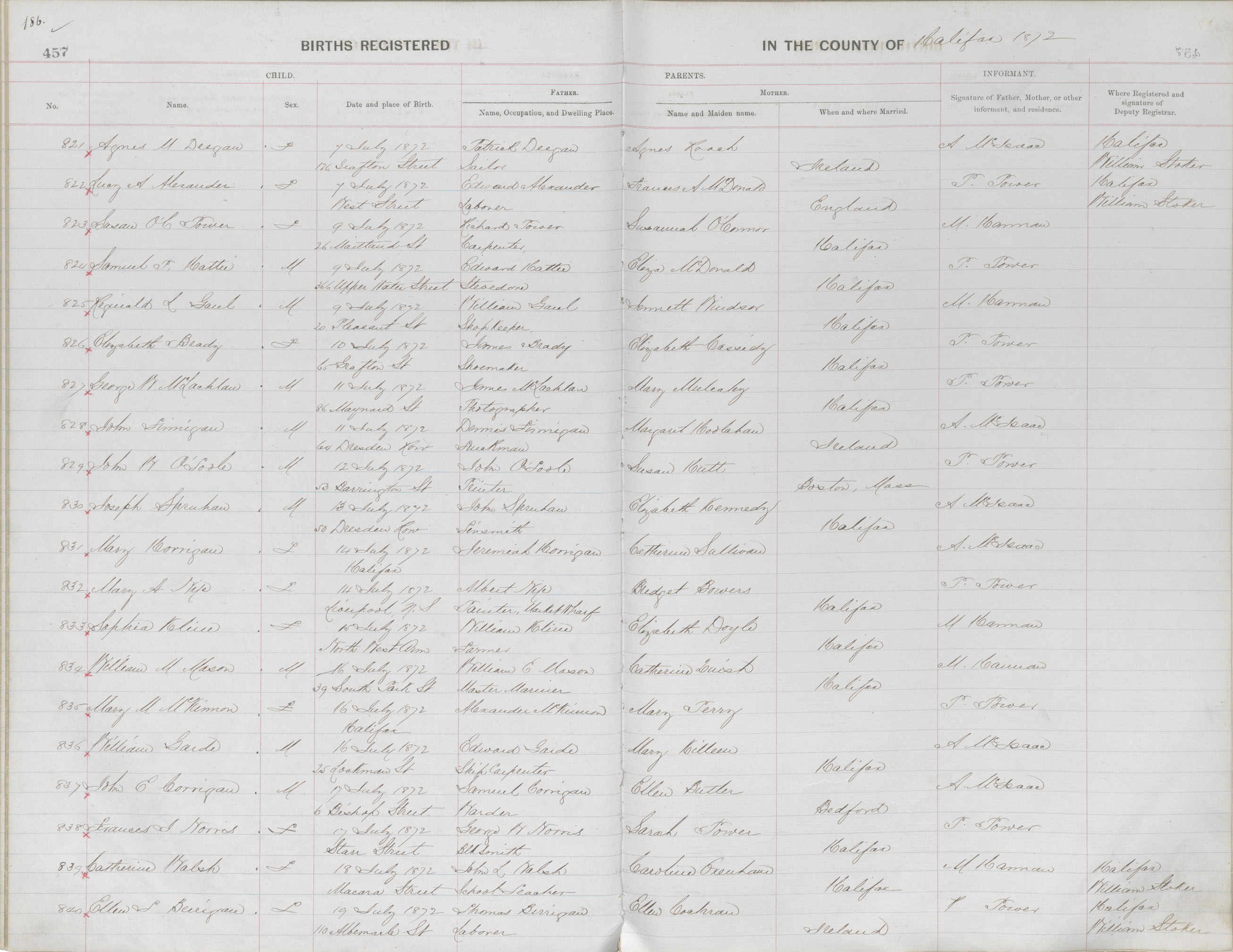 Birth Registration: Year: 1872 book: 1810 page: 186 number: 821