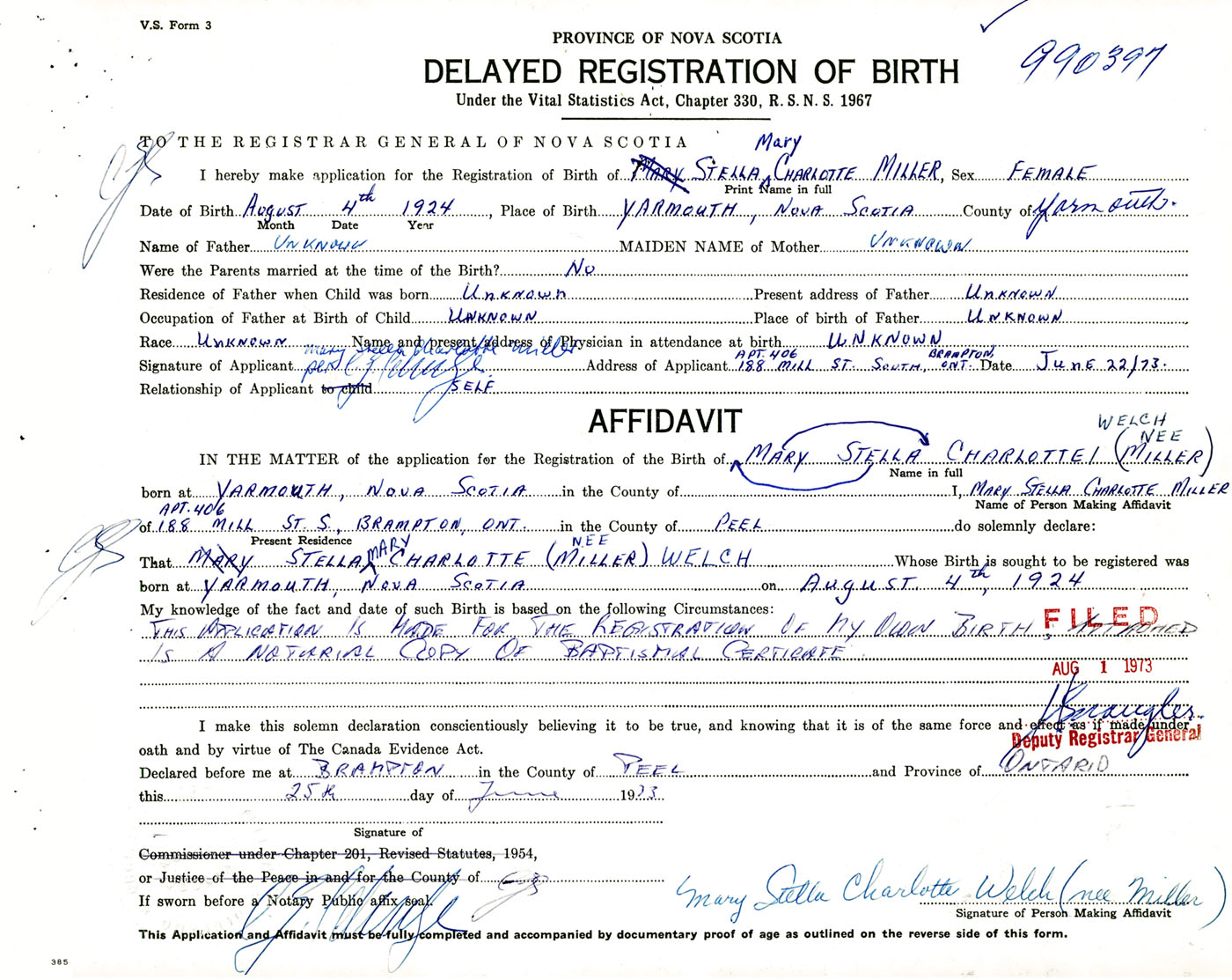 Date of Birth August 4, 1924 Place of Birth YarmouthCounty of Yarmouth