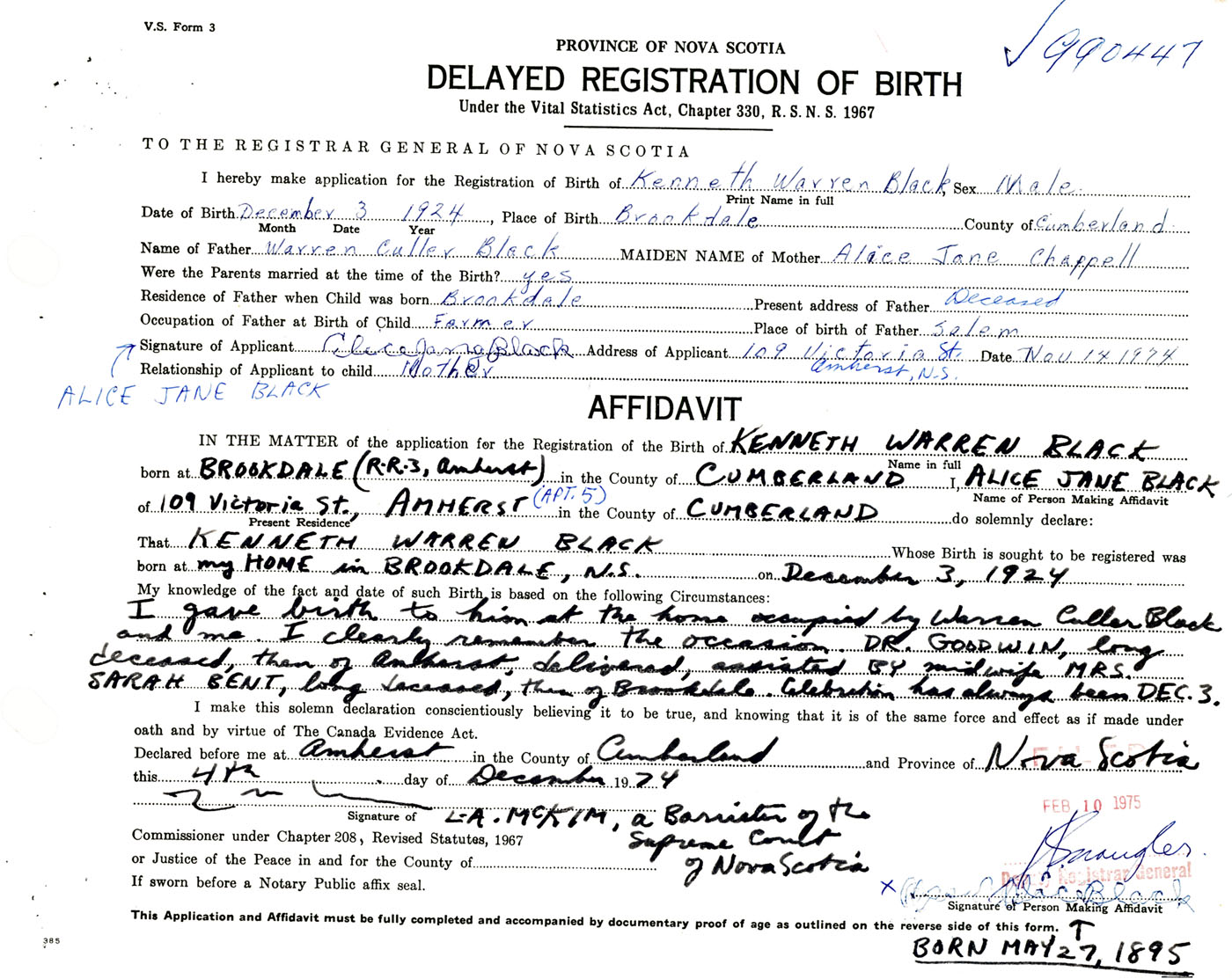 IN THE MATTER of the application for the Registration of the Birth of Kenneth WarrenBlack