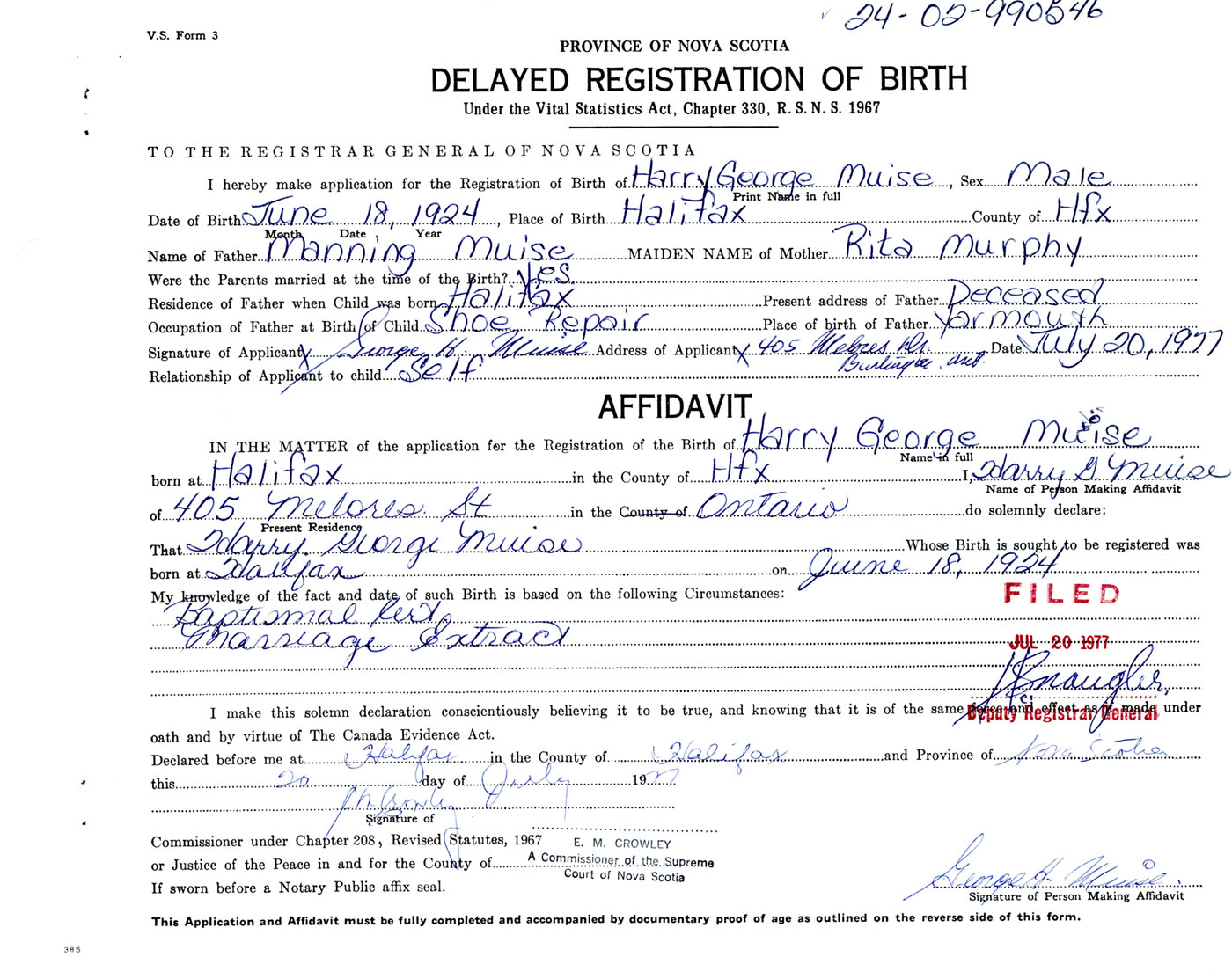 Name of Father Manning Muise MAIDEN NAME of Mother Rita Murphy