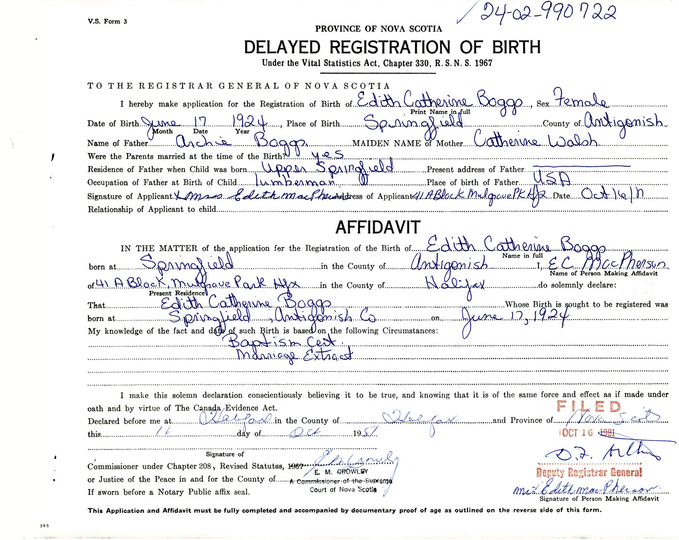 That Edith CatherineBoggs Whose Birth is sought to be registered was