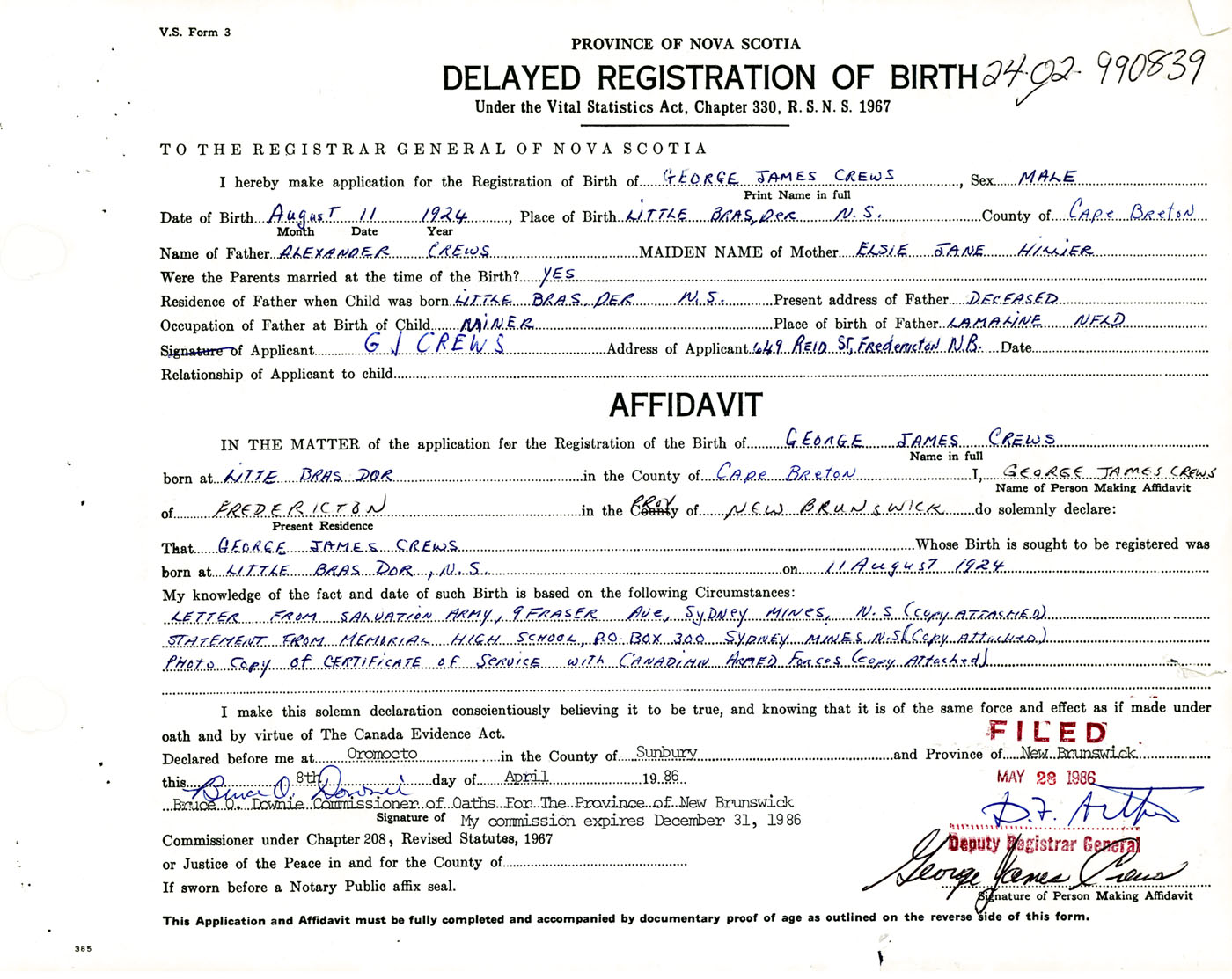 Male Birth Registration: Year: 1924 number: 99000839