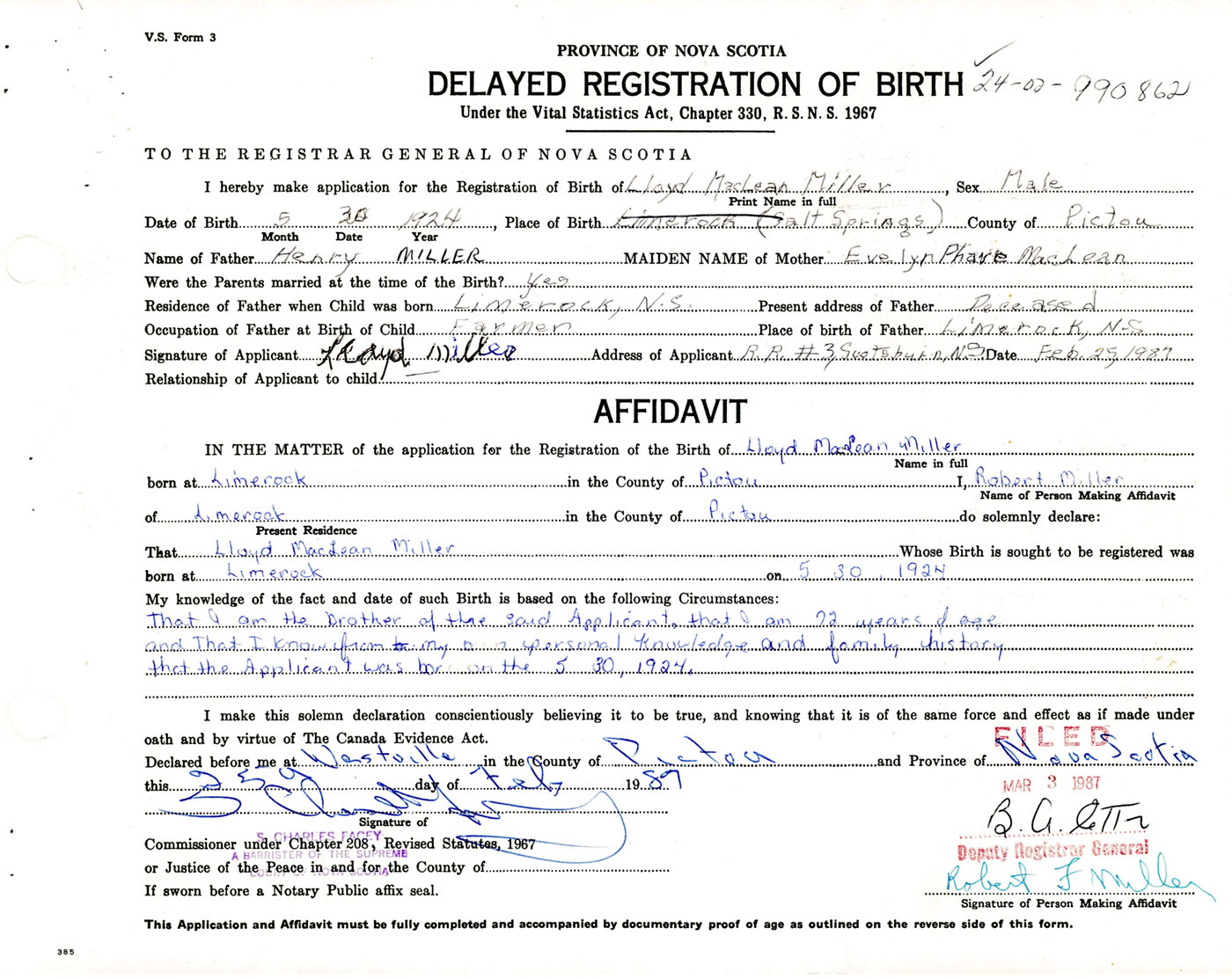 Male Birth Registration: Year: 1924 number: 99000862