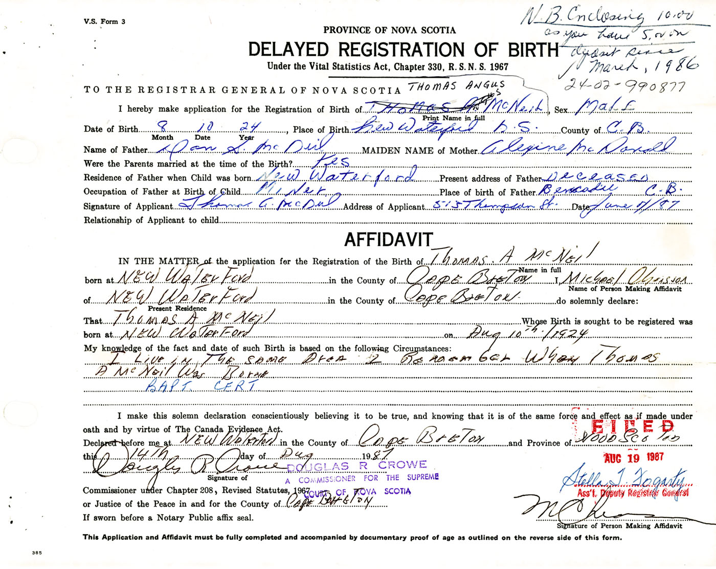 14. I live in the same area 2 Remember when Thomas A. McNeil was Borne Baptismal Certificate